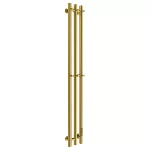Полотенцесушитель Маргроид Ferrum Inaro СНШ 120×6×12 Латунь Матовая — изысканная модель с вертикальной ориентацией, выполненная в современном стиле и предназначенная для скрытого монтажа. Благодаря утончённому дизайну и матовому латунному покрытию, устройство не только функционально, но и становится стильным элементом интерьера ванной комнаты. С правой стороны расположен димер с подсветкой и таймером, что делает эксплуатацию максимально удобной.