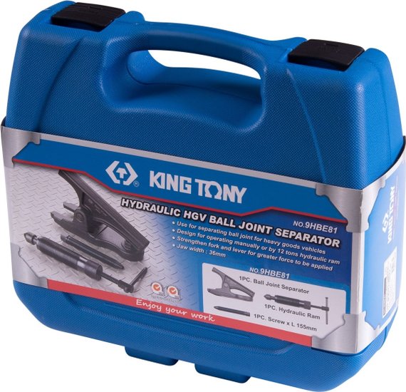 - ❗️Текст описания составлен при помощи искусственного интеллекта.✅ Съемник шаровых опор грузовиков KING TONY 9HBE81 – это надежный инструмент, который идеально подходит для демонтажа шаровых опор, рулевых наконечников и стабилизаторов. Его мощная конструкция делает его незаменимым помощником в техническом обслуживании грузовых автомобилей и тяжёлой техники.✅ Особенностью данного съемника является возможность работы как вручную, так и с использованием гидравлического цилиндра. Это обеспечивает удобство и эффективность в процессе работы, позволяя справляться с различными задачами.✅ В комплект входят все необходимые элементы: съемник шаровых опор, ручной гидравлический цилиндр, силовой винт с гайкой и прочный кейс из PE-HD пластика для удобного хранения и транспортировки. ⚠️ Обратите внимание на меры предосторожности: не используйте пневматические или электрические инструменты с ударной нагрузкой, а также обязательно смазывайте резьбу перед началом работы.✅ Съемник идеально подходит для использования на станциях технического обслуживания автомобилей, в автосервисах и автомастерских, а также в промышленности. KING TONY – наслаждайся своей работой! ❗️Текст описания составлен при помощи искусственного интеллекта.✅ Съемник шаровых опор грузовиков KING TONY 9HBE81 – это надежный инструмент, который идеально подходит для демонтажа шаровых опор, рулевых наконечников и стабилизаторов. Его мощная конструкция делает его незаменимым помощником в техническом обслуживании грузовых автомобилей и тяжёлой техники.✅ Особенностью данного съемника является возможность работы как вручную, так и с использованием гидравлического цилиндра. Это обеспечивает удобство и эффективность в процессе работы, позволяя справляться с различными задачами.✅ В комплект входят все необходимые элементы: съемник шаровых опор, ручной гидравлический цилиндр, силовой винт с гайкой и прочный кейс из PE-HD пластика для удобного хранения и транспортировки. ⚠️ Обратите внимание на меры предосторожности: не используйте пневматические или электрические инструменты с ударной нагрузкой, а также обязательно смазывайте резьбу перед началом работы.✅ Съемник идеально подходит для использования на станциях технического обслуживания автомобилей, в автосервисах и автомастерских, а также в промышленности. KING TONY – наслаждайся своей работой!