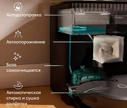 Функции и особенности базыавтоматическая очистка насадки, автоматическая сушка насадки, автоматический слив воды, резервуар для грязной воды, резервуар для чистой воды, самоочистка пылесборника