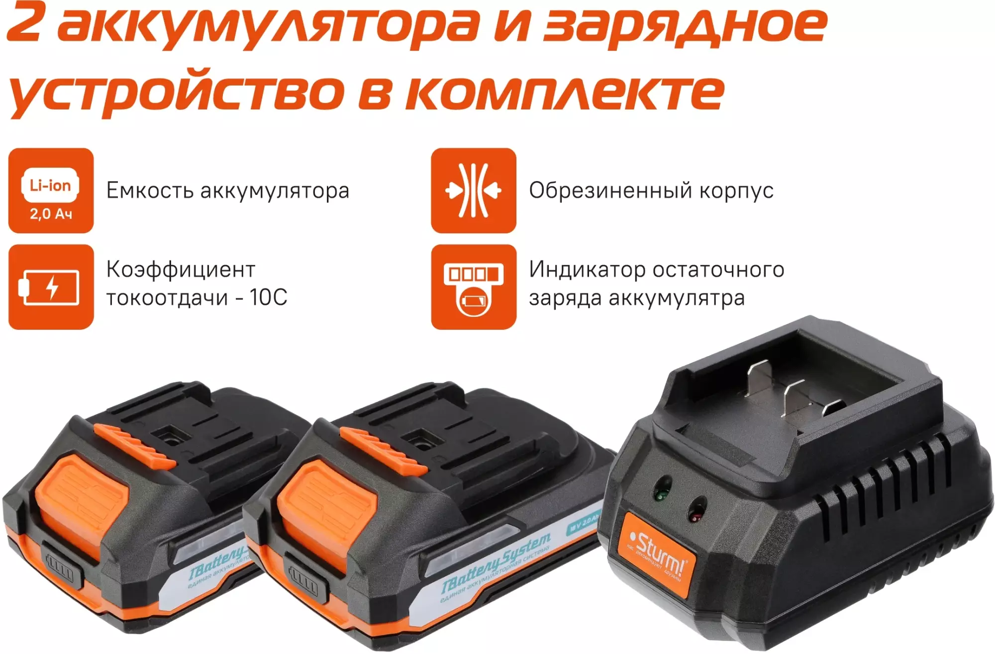 • Емкость аккумулятора 2 Ач