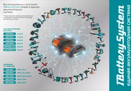 • Напряжение аккумулятора 18 В