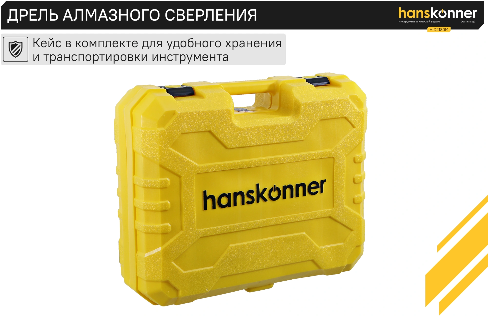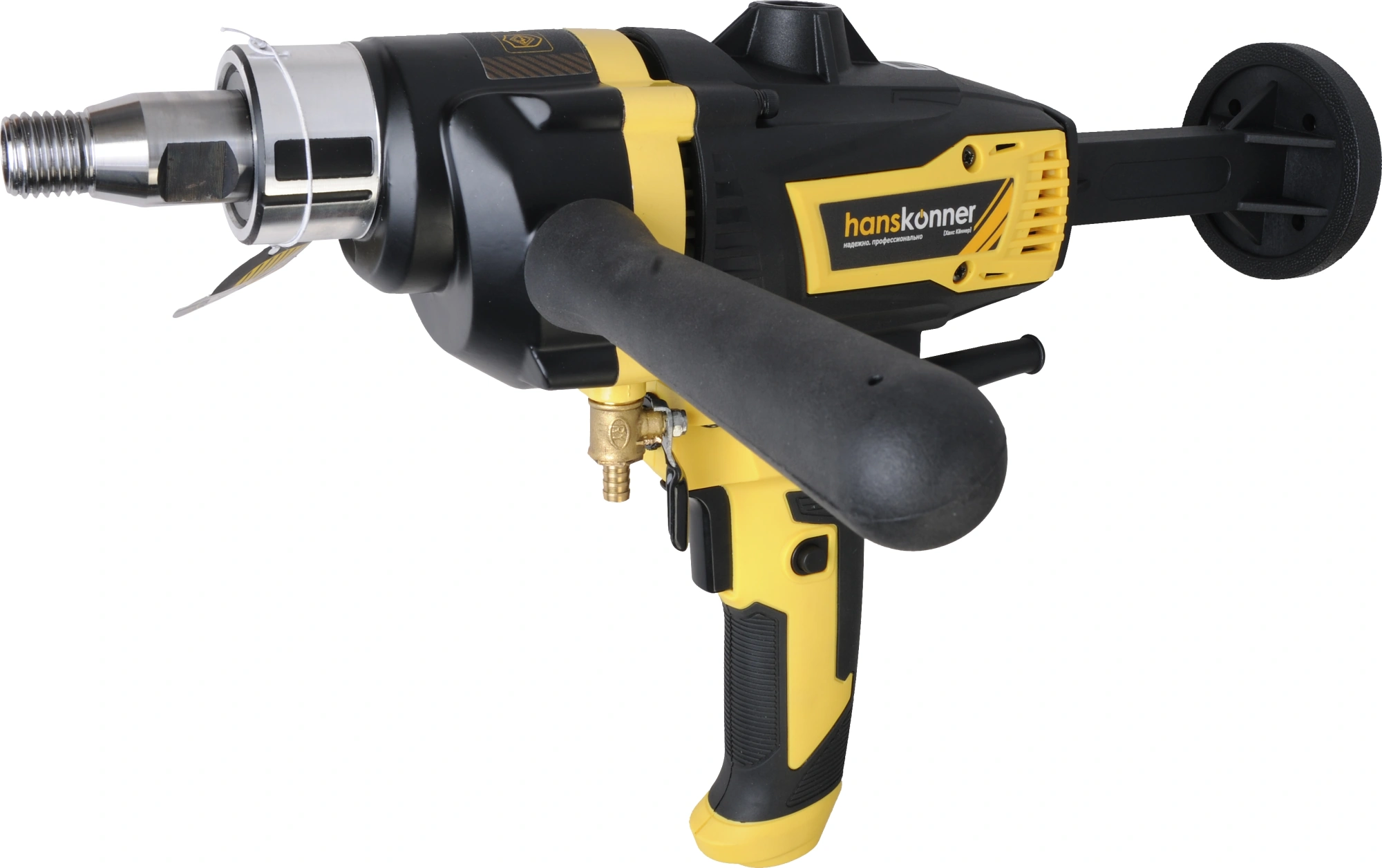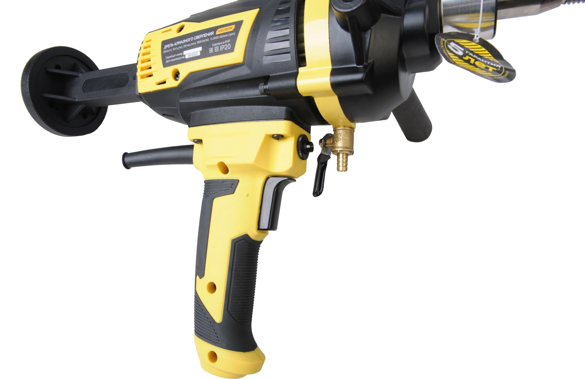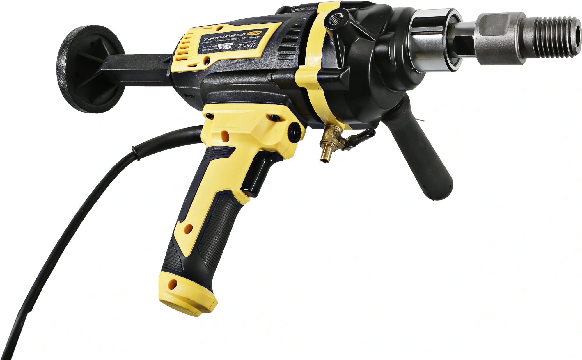 • Комплект поставки Дрель безударная, боковая ручка, адаптер для алмазных коронок 1 1/4", задняя ручка, уплотнительное кольцо - 2 шт., шланг подачи воды, винт - 4 шт., угольная щетка 1 компл., инструкция по эксплуатации, инструкция по безопасности.
