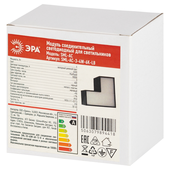 Модуль соединительный светодиодный ЭРА SML-AC-3-4W-6K-LB для светильников SML-30 4Вт 6500K 400Лм черный
