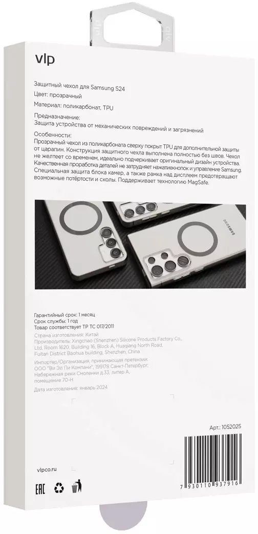 Чехол VLP Puro Case, для Samsung Galaxy S24, прозрачный (1052025)
