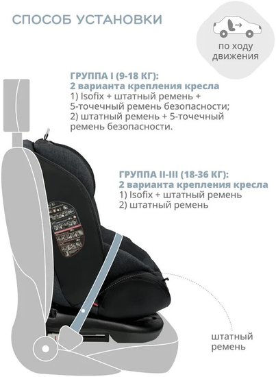 • Возрастная группа 0/1/2/3 (до 36 кг)