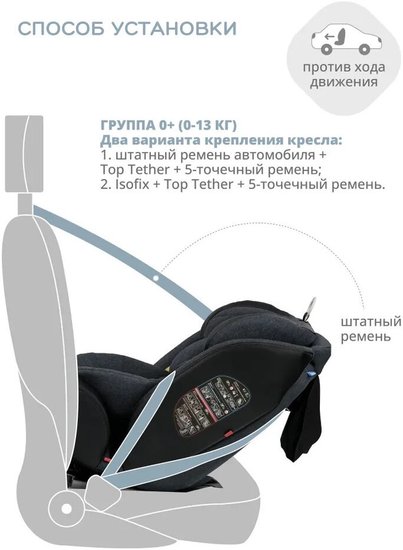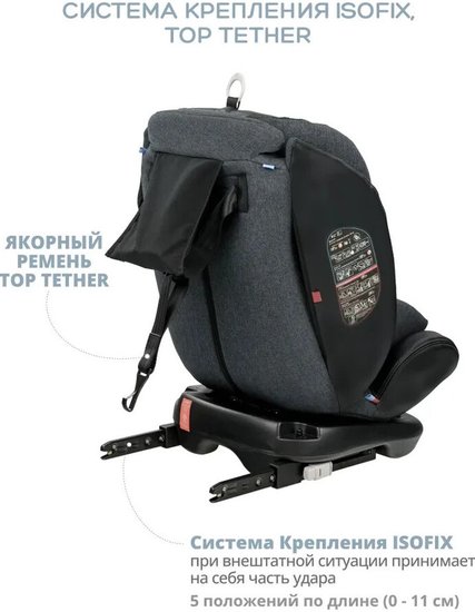 • Крепление посредством ремней автомобиля, ISOFIX, якорное