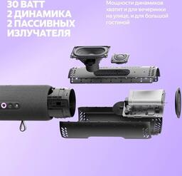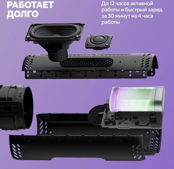 ✅ Яндекс Станция Стрит - первая портативная умная колонка Яндекса с мощным звучанием, AI-ассистентом Алисой и ёмким аккумулятором. Её удобно брать с собой куда угодно и управлять любимой музыкой голосом через Wi-Fi или Bluetooth.✅ Алиса умеет многое и станет полезной в поездках, на прогулках или тренировках. Она может включить плейлист для пикника, развлечь детей в дороге, засечь время на упражнение или подсказать, как определить стороны света.✅ Подключить колонку можно через Wi-Fi - используя мобильный интернет через точку доступа на смартфоне. Если Wi-Fi недоступен, подключение по Bluetooth позволит управлять воспроизведением с помощью голосовых команд, например: "Дальше", "Громче", "Стоп".✅ Звучание у Станции Стрит громкое, чистое и яркое. Два динамика и два пассивных излучателя обеспечивают мощность 30 Вт, создавая насыщенный звук.✅ Колонка адаптируется под окружающую среду. Для улицы и помещений предусмотрены разные режимы, доступные в приложении "Дом с Алисой". Также доступна функция автоопределения окружения.✅ Аккумулятор обеспечивает до 12 часов активной работы. При снижении заряда до 10% Алиса предупредит об этом, а быстрая зарядка за 30 минут обеспечит до 4 часов работы.✅ Устройство защищено от пыли и воды по стандарту IP67. Материал корпуса не выгорает на солнце. Если вода попадёт в зарядный разъём, Алиса напомнит просушить колонку.✅ В комплект входит съёмный ремешок с карабином. Колонку можно носить в руке, ставить вертикально или горизонтально, а также подвешивать, например, на рюкзак.⚠️ Обратите внимание, адаптер питания в комплект поставки не входит и приобретается отдельно.✅ Яндекс Станция Стрит - первая портативная умная колонка Яндекса с мощным звучанием, AI-ассистентом Алисой и ёмким аккумулятором. Её удобно брать с собой куда угодно и управлять любимой музыкой голосом через Wi-Fi или Bluetooth.✅ Алиса умеет многое и станет полезной в поездках, на прогулках или тренировках. Она может включить плейлист для пикника, развлечь детей в дороге, засечь время на упражнение или подсказать, как определить стороны света.✅ Подключить колонку можно через Wi-Fi - используя мобильный интернет через точку доступа на смартфоне. Если Wi-Fi недоступен, подключение по Bluetooth позволит управлять воспроизведением с помощью голосовых команд, например: "Дальше", "Громче", "Стоп".✅ Звучание у Станции Стрит громкое, чистое и яркое. Два динамика и два пассивных излучателя обеспечивают мощность 30 Вт, создавая насыщенный звук.✅ Колонка адаптируется под окружающую среду. Для улицы и помещений предусмотрены разные режимы, доступные в приложении "Дом с Алисой". Также доступна функция автоопределения окружения.✅ Аккумулятор обеспечивает до 12 часов активной работы. При снижении заряда до 10% Алиса предупредит об этом, а быстрая зарядка за 30 минут обеспечит до 4 часов работы.✅ Устройство защищено от пыли и воды по стандарту IP67. Материал корпуса не выгорает на солнце. Если вода попадёт в зарядный разъём, Алиса напомнит просушить колонку.✅ В комплект входит съёмный ремешок с карабином. Колонку можно носить в руке, ставить вертикально или горизонтально, а также подвешивать, например, на рюкзак.⚠️ Обратите внимание, адаптер питания в комплект поставки не входит и приобретается отдельно.