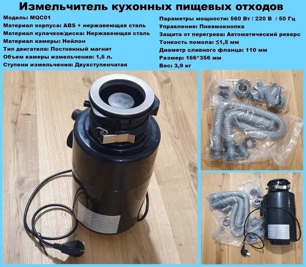 - ✅Ключевые характеристикиИзмельчитель отходов подходит для установки в мойку и рассчитан на пользователей, которым важно эффективно и быстро утилизировать пищевые остатки. Устройство обладает мощностью 560 Вт, объемом камеры 1.5 л и двумя ступенями измельчения, что обеспечивает качественную переработку бытовых отходов.✅Преимущества и отличияМодель оснащена пневматической кнопкой управления для безопасного и удобного включения. Использование реверса позволяет избежать заклинивания рабочих элементов, а корпус из ABS-пластика и нержавеющей стали обеспечивает долговечность и устойчивость к коррозии.✅ПрактичностьПрибор отличается компактными габаритами - ширина 166 мм и высота 356 мм, что дает возможность установить его даже под стандартной кухонной мойкой без потери полезного пространства. Вес 3.9 кг облегчает процесс монтажа и обслуживания.✅УникальностьОсобенностью устройства является сочетание магнитного и электрического механизмов работы, что способствует эффективному измельчению даже твердых остатков. Два уровня измельчения делают прибор универсальным решением для большинства домашних кухонь. ✅Ключевые характеристикиИзмельчитель отходов подходит для установки в мойку и рассчитан на пользователей, которым важно эффективно и быстро утилизировать пищевые остатки. Устройство обладает мощностью 560 Вт, объемом камеры 1.5 л и двумя ступенями измельчения, что обеспечивает качественную переработку бытовых отходов.✅Преимущества и отличияМодель оснащена пневматической кнопкой управления для безопасного и удобного включения. Использование реверса позволяет избежать заклинивания рабочих элементов, а корпус из ABS-пластика и нержавеющей стали обеспечивает долговечность и устойчивость к коррозии.✅ПрактичностьПрибор отличается компактными габаритами - ширина 166 мм и высота 356 мм, что дает возможность установить его даже под стандартной кухонной мойкой без потери полезного пространства. Вес 3.9 кг облегчает процесс монтажа и обслуживания.✅УникальностьОсобенностью устройства является сочетание магнитного и электрического механизмов работы, что способствует эффективному измельчению даже твердых остатков. Два уровня измельчения делают прибор универсальным решением для большинства домашних кухонь.
