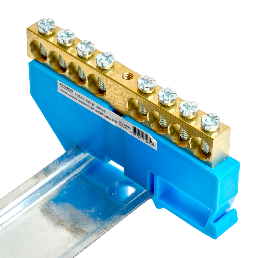 Шина"N" на изоляторе STEKKER 8*12 на DIN-рейку 8 выводов, синий, LD555-812-8 49539