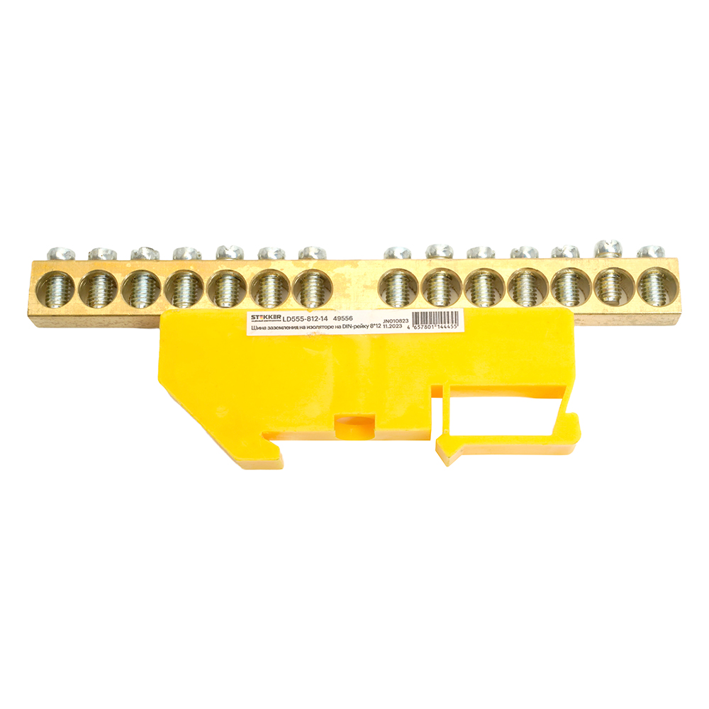 Шина "PE" STEKKER на изоляторе 8*12 на DIN-рейку 14 выводов, желтый, LD555-812-14 49556