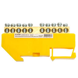 LD555-69-10 Шина "PE" на изоляторе 6*9 на DIN-рейку 10 выводов, желтый