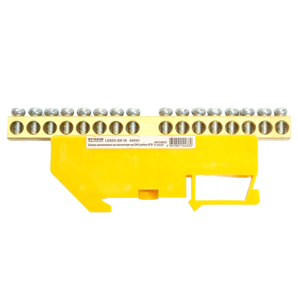 Шина"PE" на изоляторе STEKKER 6*9 на DIN-рейку 16 выводов, желтый, LD555-69-16 49550