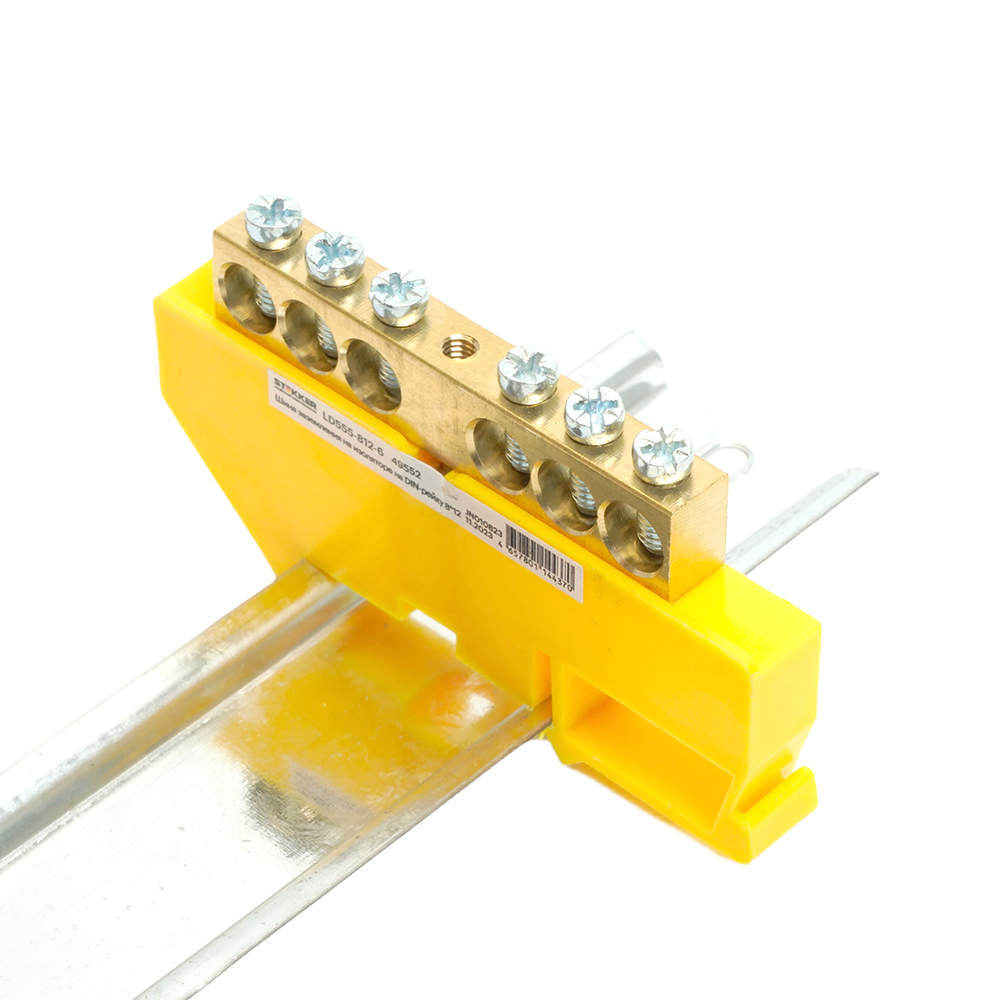 LD555-812- 6 Шина "PE" на изоляторе 8*12 на DIN-рейку 6 выводов, желтый
