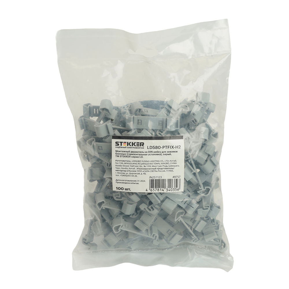 Монтажный держатель на DIN-рейку для зажимов блочных (горизонтальная установка), серый LD580-PTFIX-H2 49757