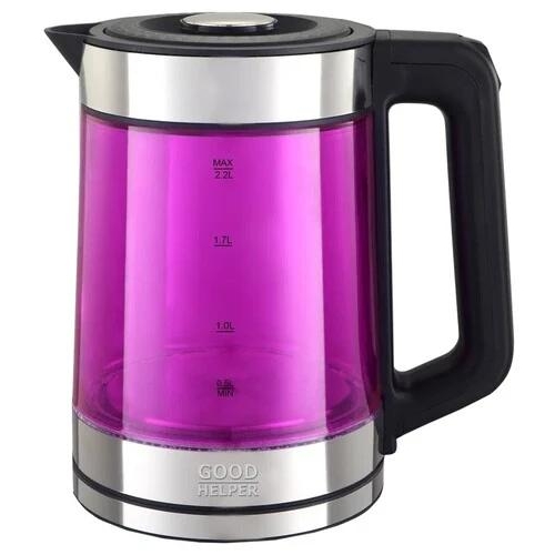 Удобное решение как для дома, так и для офиса. Стеклянный чайник с двойными стенками! Корпус не нагревается. Внутренняя колба — стекло, внешняя колба деодорированный пластик. Благодаря объему 2,2 л можно подогреть воду для нескольких человек. Удобная ручка из ABS-пластика избавит от ожогов и травм. Чайник не включится, если в нем нет воды, а также автоматически отключится при закипании, что убережет прибор от быстрого износа, а также предотвратит возгорание. Стеклянный корпус удобен для ухода за электрическим чайником — вы вовремя заметите скопление накипи и сможете быстро и легко очистить прибор.