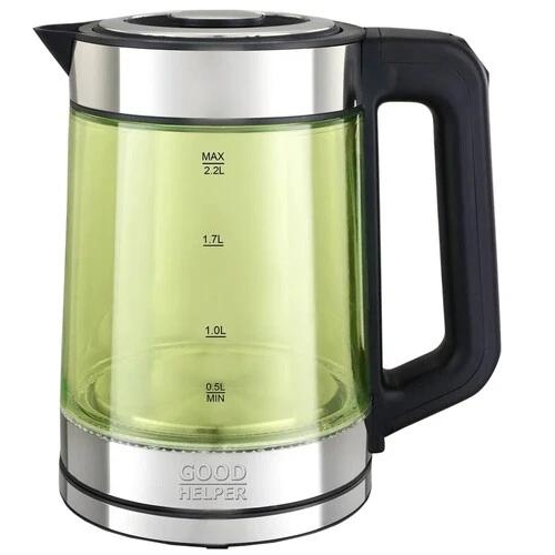 Удобное решение как для дома, так и для офиса. Стеклянный чайник с двойными стенками! Корпус не нагревается. Внутренняя колба — стекло, внешняя колба деодорированный пластик. Благодаря объему 2,2 л можно подогреть воду для нескольких человек. Удобная ручка из ABS-пластика избавит от ожогов и травм. Чайник не включится, если в нем нет воды, а также автоматически отключится при закипании, что убережет прибор от быстрого износа, а также предотвратит возгорание. Стеклянный корпус удобен для ухода за электрическим чайником — вы вовремя заметите скопление накипи и сможете быстро и легко очистить прибор.