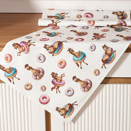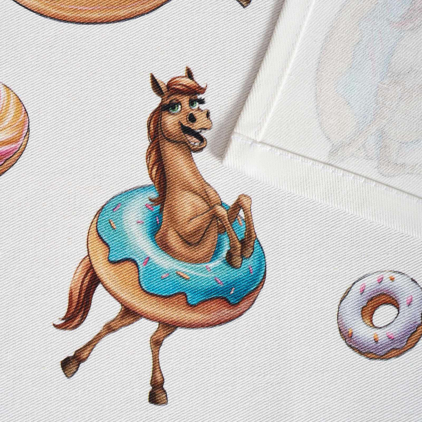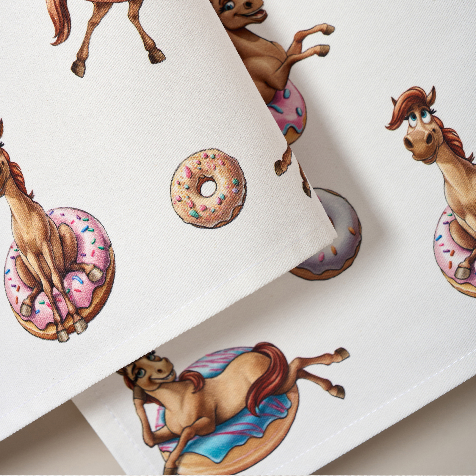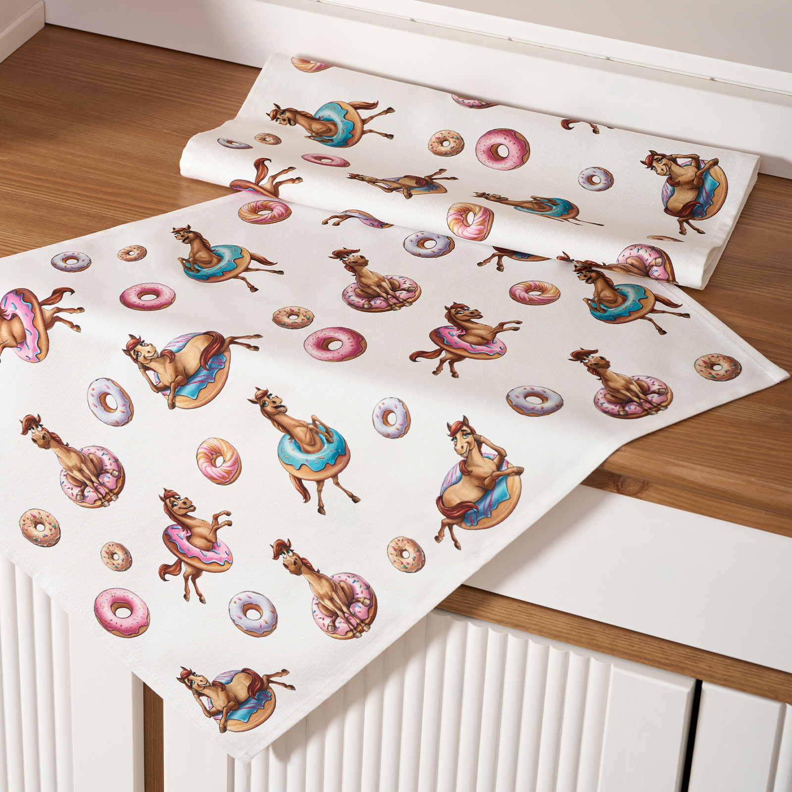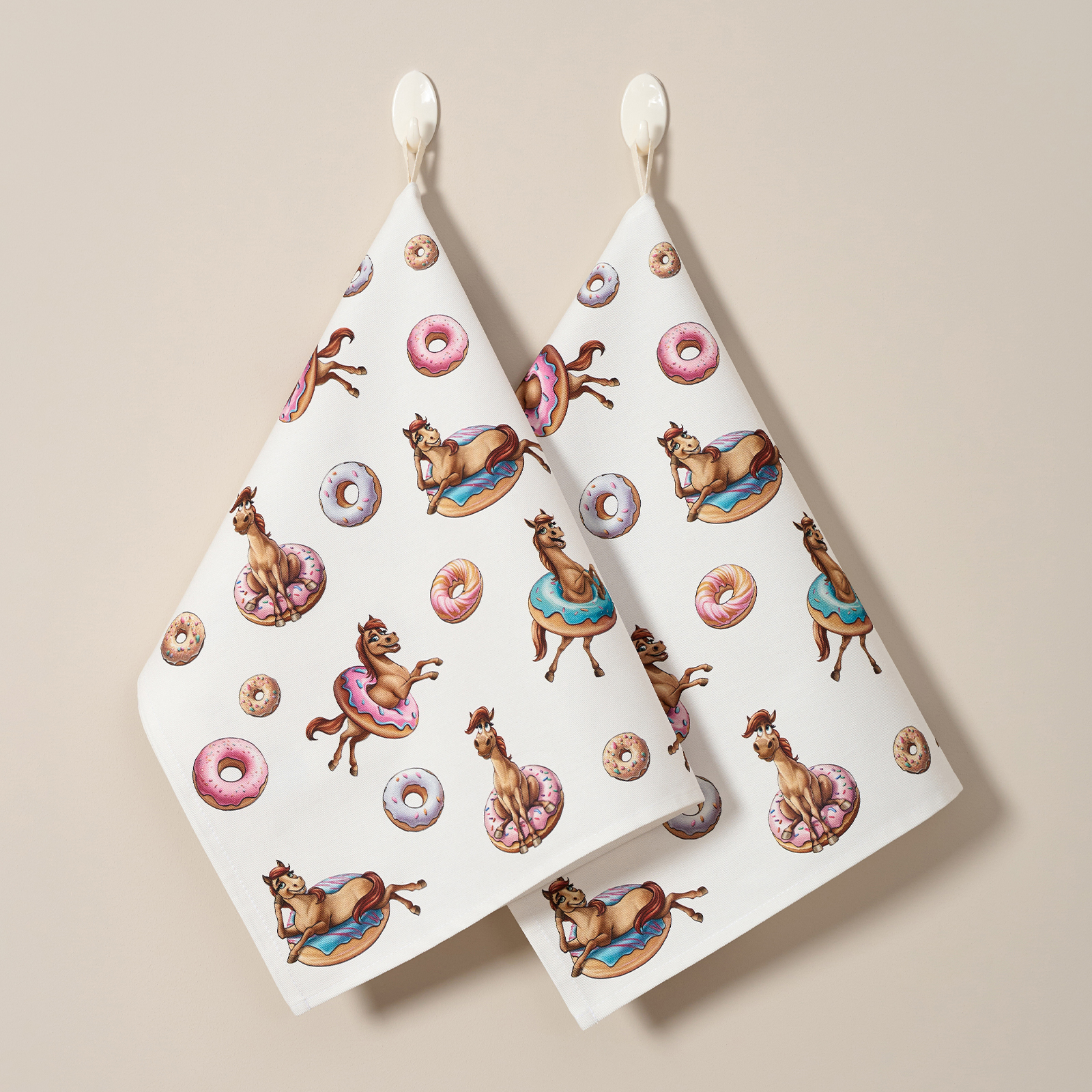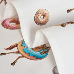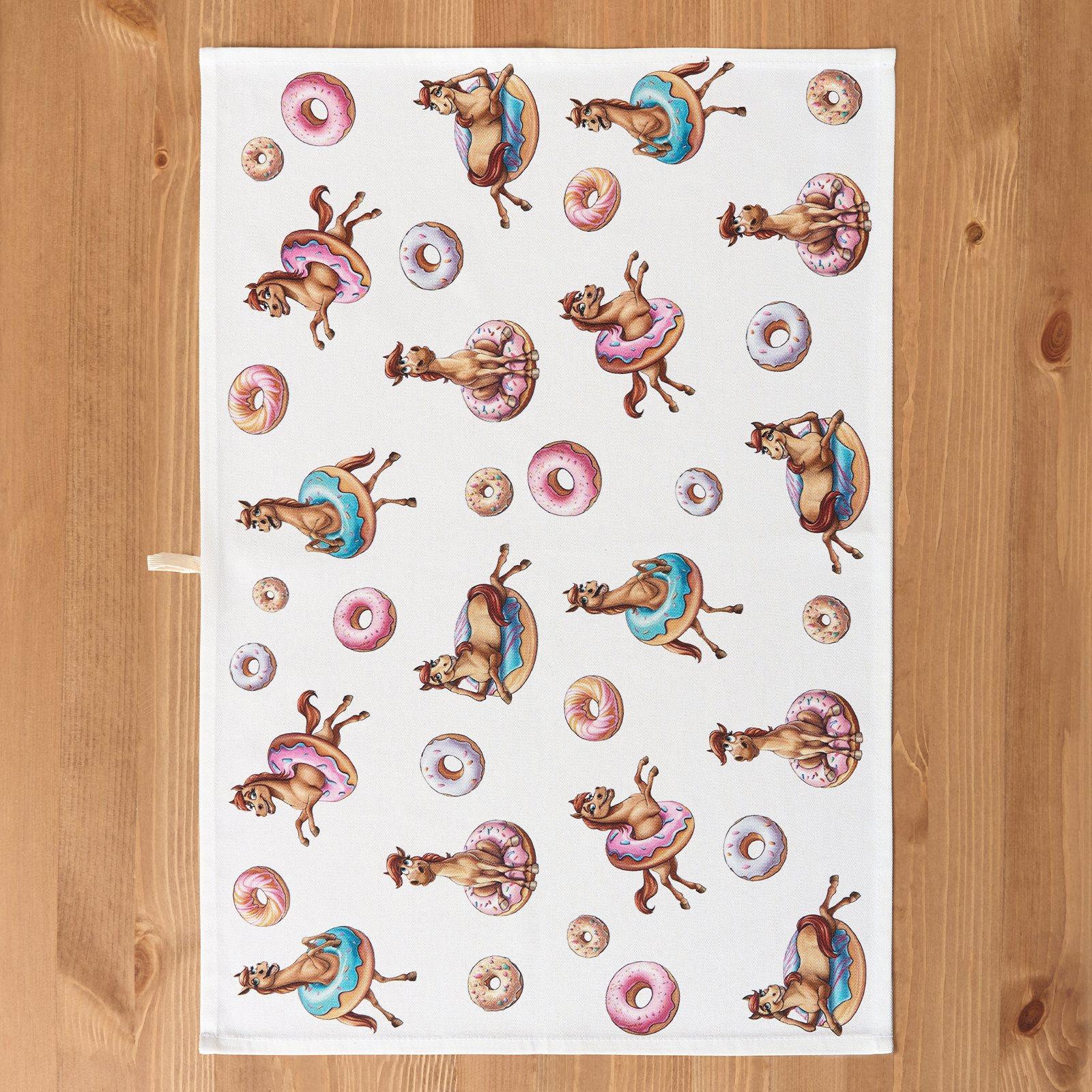 Прикольный принт с лошадками и пончиками поднимет настроение взрослым и детям, добавит уюта и праздничной атмосферы. Такие полотенца можно подарить подруге, маме, бабушке или ребёнку — как прикольный символ года, а также использовать для сервировки или как необычный новогодний сувенир.