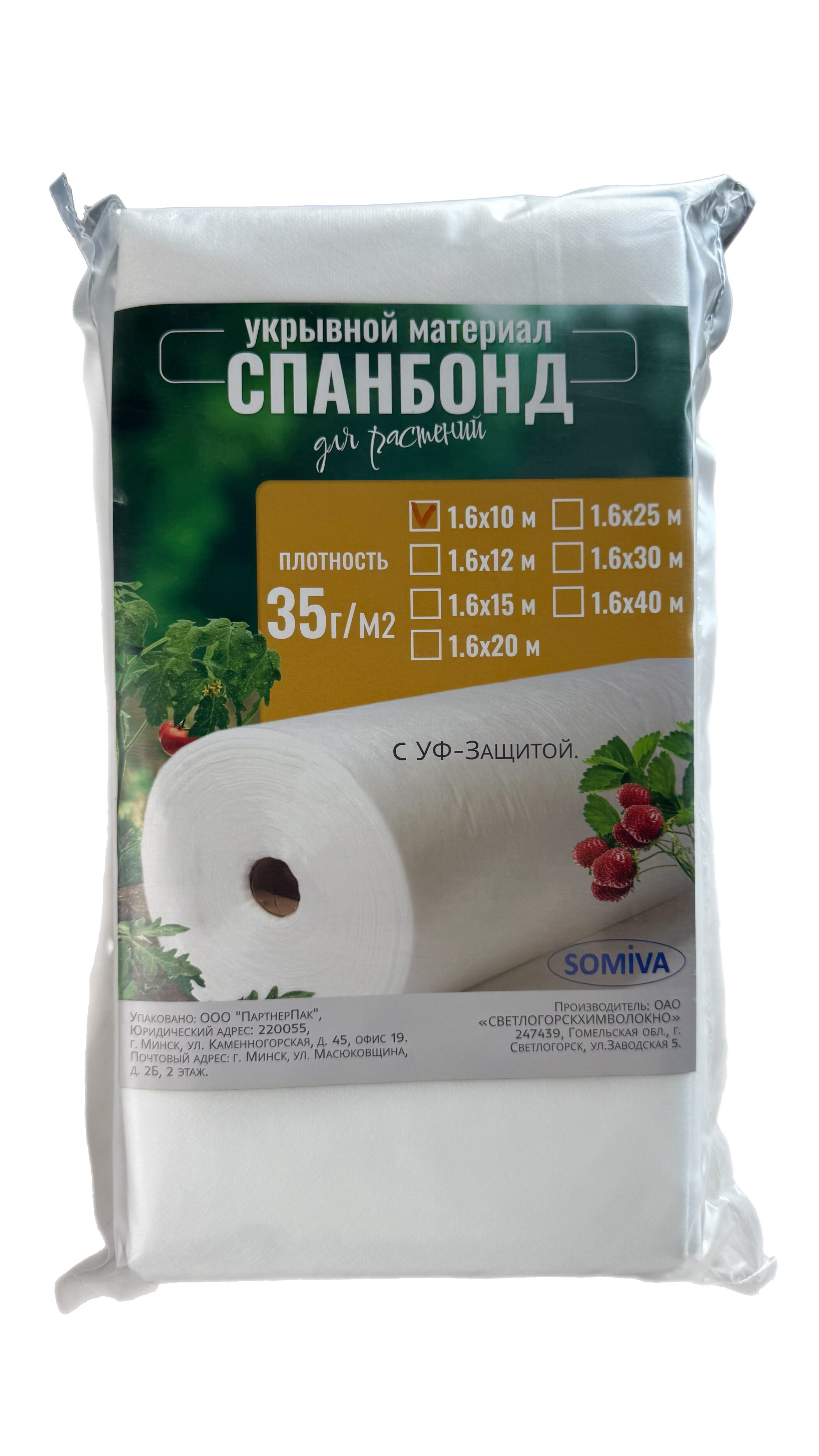Укрывной материал Somiva Спанбонд СУФ-ЭКОБел 35пл 1.6x10м / 100000003 (натуральный)