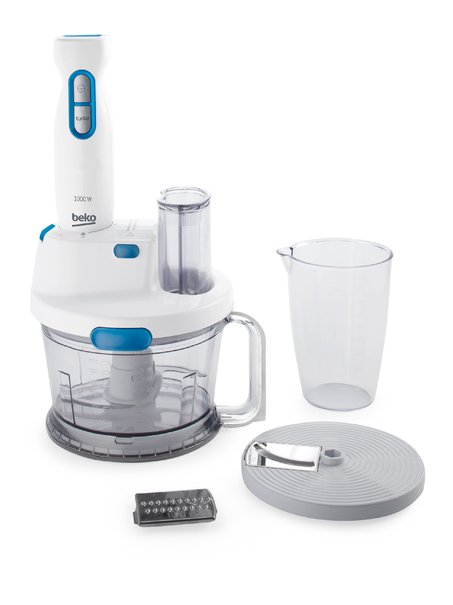Универсальный ручной блендер Beko HBG5100W с комплектом чаш. Мощный мотор 1000 Вт позволяет легко и быстро измельчить пищу. Скоростной режим справится с измельчением орехов, овощей, трав, кубиков льда и других продуктов, сохранив их вкус и витамины. Турборежим. В мерную чашу объемом 1,5 л поместится все необходимое количество ингредиентов. В комплекте мерная чаша, венчик из нержавеющей стали, блендер, терка. Удобное управление нажатием одной кнопки. Идеально подходит для супов, соусов, теста. Блендеры Beko помогут быстро приготовить вкусные блюда каждый день!