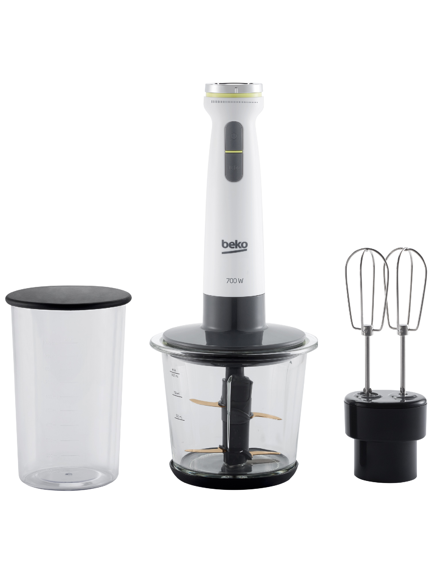Универсальный ручной блендер Beko HBA7608W с комплектом чаш. Мощный мотор 700 Вт позволяет легко и быстро измельчить пищу. 12 скоростных режимов справятся с измельчением орехов, овощей, трав, кубиков льда и других продуктов, сохранив их вкус и витамины. Турборежим. В мерную чашу объемом 1000 мл поместится все необходимое количество ингредиентов. В комплекте венчик и керамическое лезвие. Удобное управление нажатием одной кнопки. Идеально подходит для супов, соусов, теста. Блендеры Beko помогут быстро приготовить вкусные блюда каждый день!