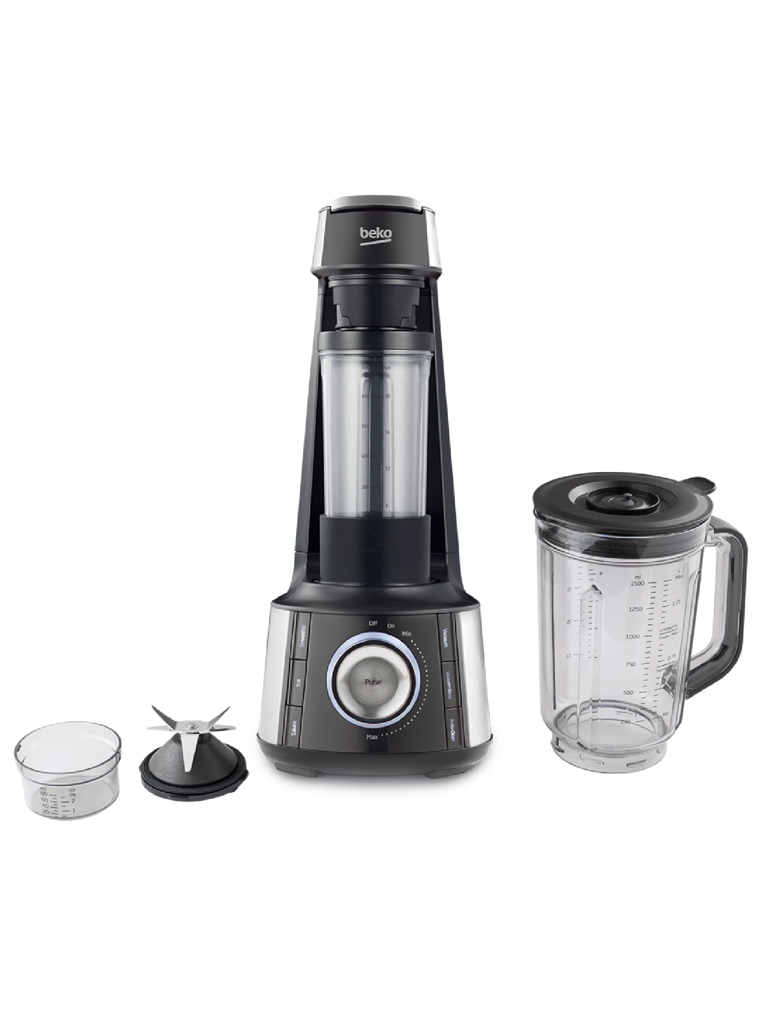Вакуумный настольный блендер Beko TBV8106BX. Мощный мотор 1000 Вт позволяет легко измельчить пищу за считанные секунды. Несколько скоростных режимов справятся с измельчением орехов, овощей, трав, кубиков льда и других продуктов, сохранив их вкус и витамины. В тритановую чашу объемом 1,5 л поместится все необходимое количество ингредиентов. В комплекте лезвия для колки льда, бутылка Ready&Go 700 мл. Удобное управление нажатием одной кнопки. Легкое и безопасное снятие лезвий. Блокировка от детей. Автоочистка. Идеально подходит для супов, соусов, смузи, теста. Блендеры Beko помогут быстро приготовить вкусные блюда каждый день!