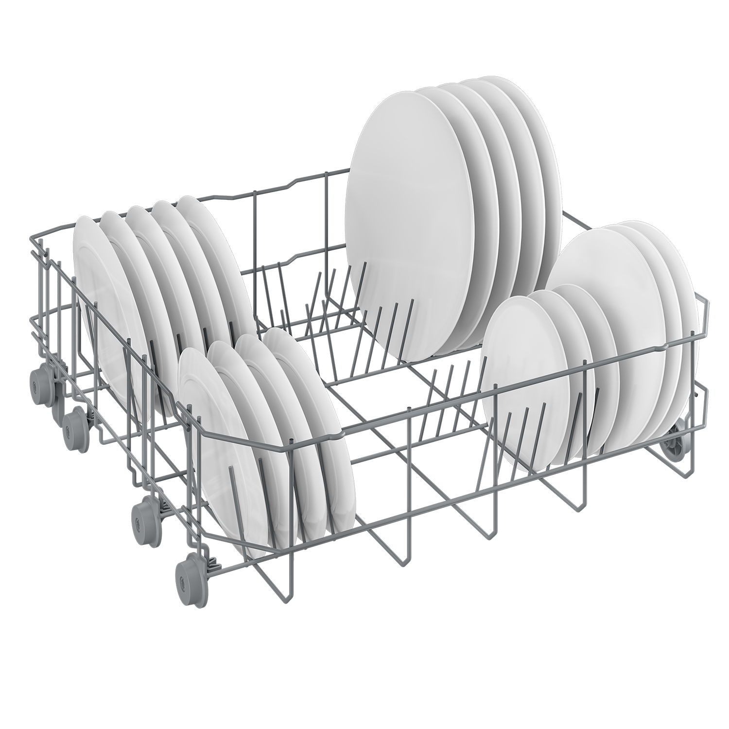 Серебристая посудомоечная машина шириной 60 см и классом энергопотребления А. Вмещает 13 комплектов посуды и имеет 5 встроенных программ мытья с отложенным стартом и температурными режимами от 35 до 70 градусов. Благодаря системе защиты от протечек WaterSafe машину можно спокойно включать перед выходом из дома — она постоянно контролирует уровень воды и автоматически прекратит ее подачу, если обнаружит избыток. Функция половинной загрузки позволит не дожидаться полного заполнения машины, запустив программу мытья со сниженным расходом электричества и воды.