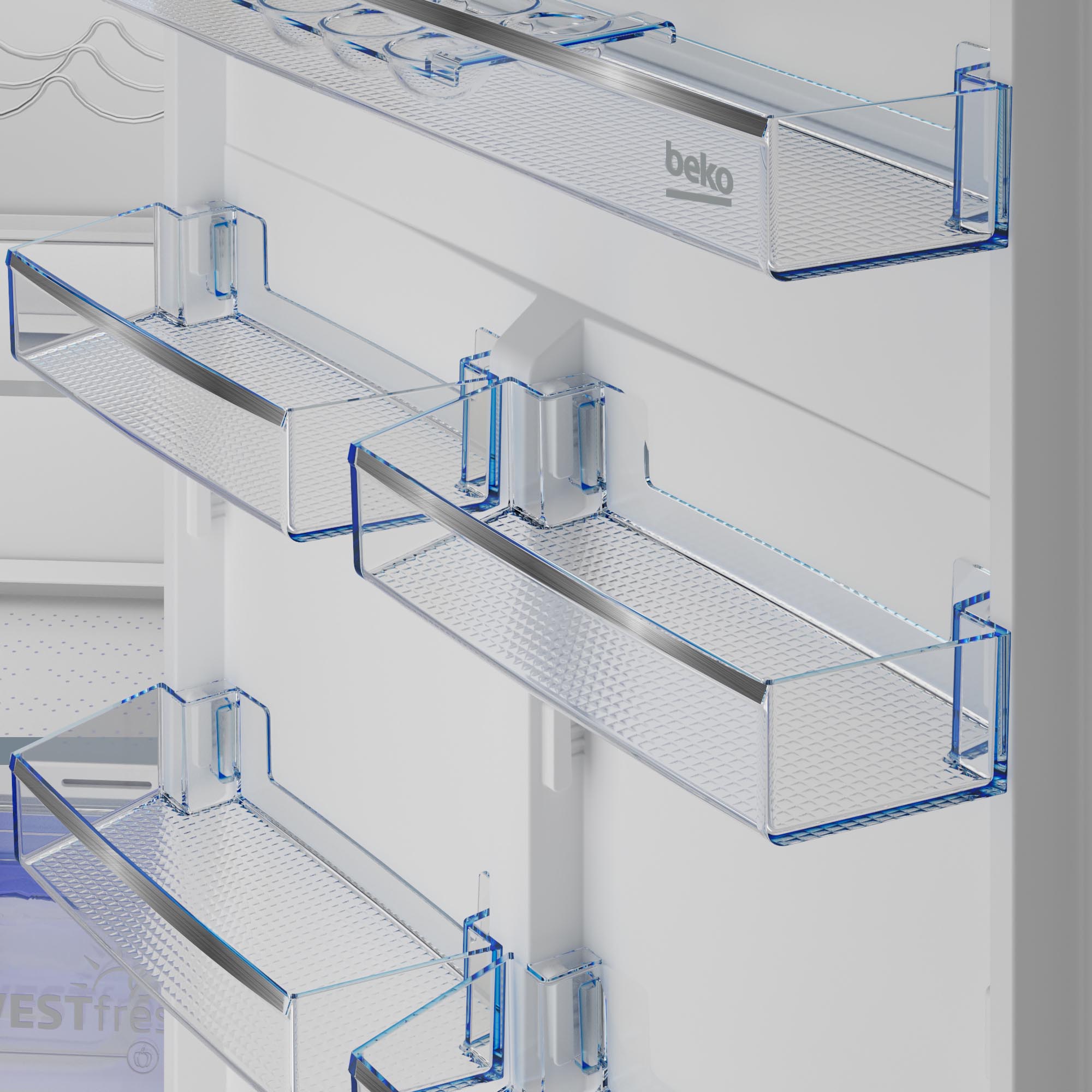 Встраиваемый холодильник Beko BCNE400I35ZS шириной 69 см с нижней морозильной камерой оснащен системой охлаждения Total No Frost (тотал ноу фрост) благодаря которой не нужно регулярно размораживать технику. В холодильнике предусмотрена зона свежести 0-3˚C, хромированная полка для бутылок и специальное отделение для овощей и фруктов с технологией трёх цветов для длительного сохранения витаминов в свежих продуктах.