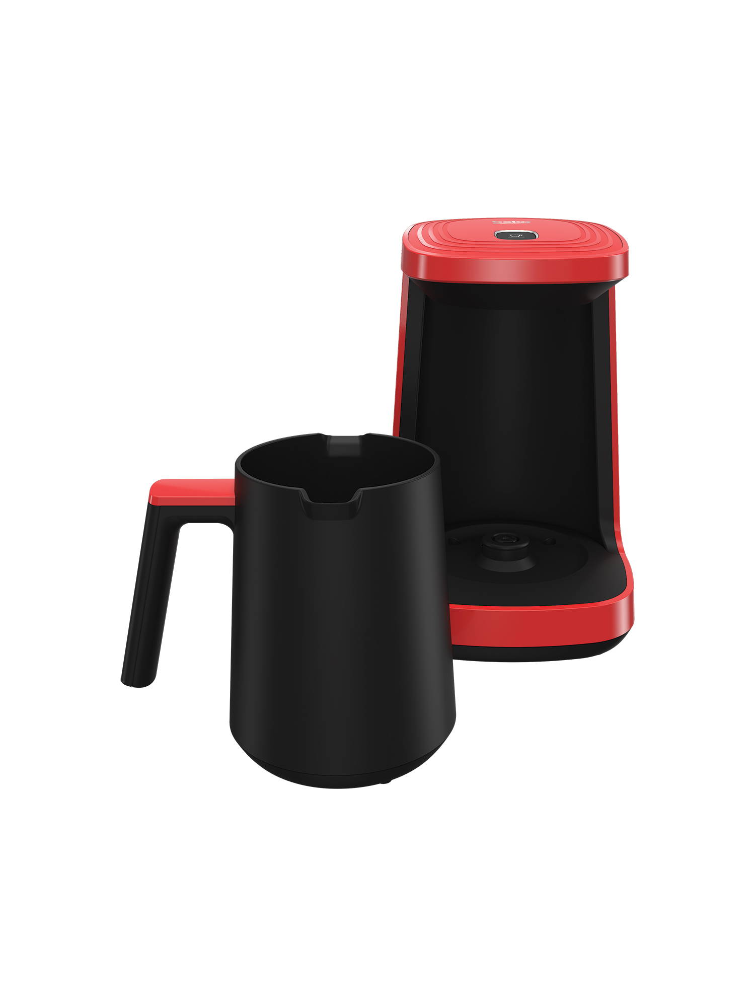 Компактная кофемашина для автоматического приготовления кофе по-турецки выполнена в ярком сочетании черного и красного цветов, кофе в ней готовится нажатием всего одной кнопки. Кофемашина позволяет приготовить до 4 чашек ароматного свежесваренного кофе за один раз. Благодаря технологии Cooksense нет необходимости контролировать процесс приготовления кофе, так как инфракрасный сенсор определяет уровень кофе, и, когда пенка достигает необходимого уровня, процесс приготовления завершается, тем самым предотвращая кофе от перелива.