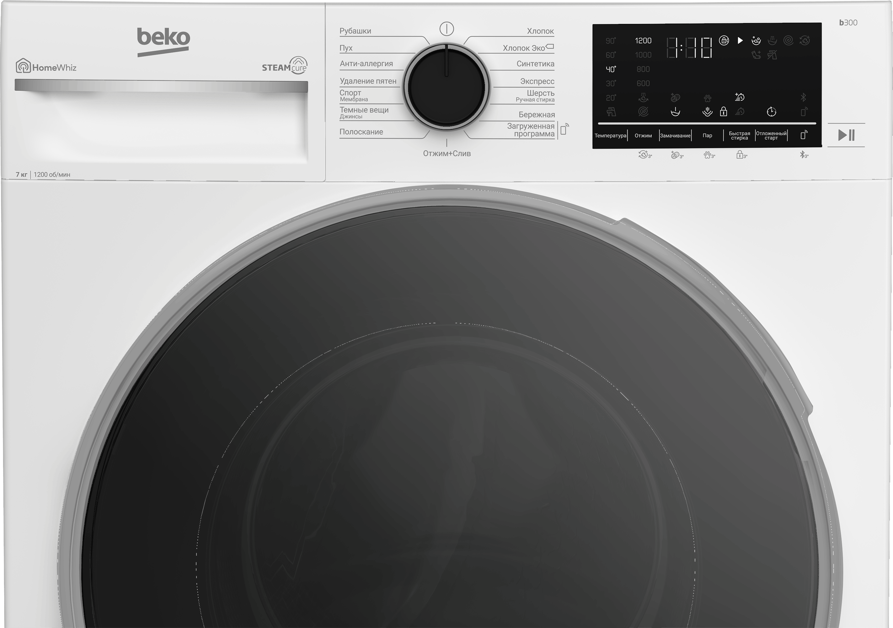 Функция обработки паром освежает и смягчает вещи, уменьшает количество складок и облегчает последующую глажку. Специальная функция удаления шерсти поможет владельцам домашних животных забыть о волосках пушистых любимцев на одежде. Дистанционное управление стиральной машиной Beko B3WFR572WC (BY) позволяет контролировать процесс стирки через приложение на смартфоне.