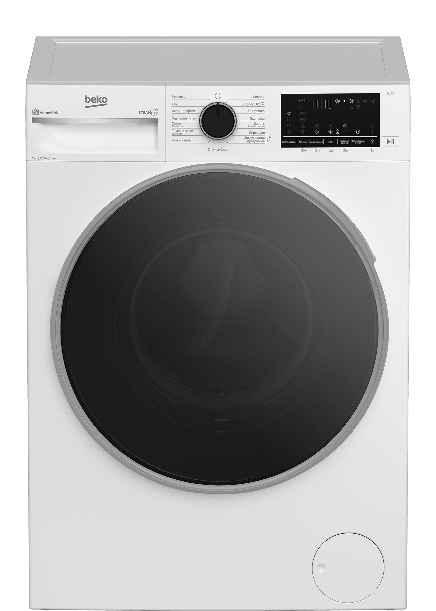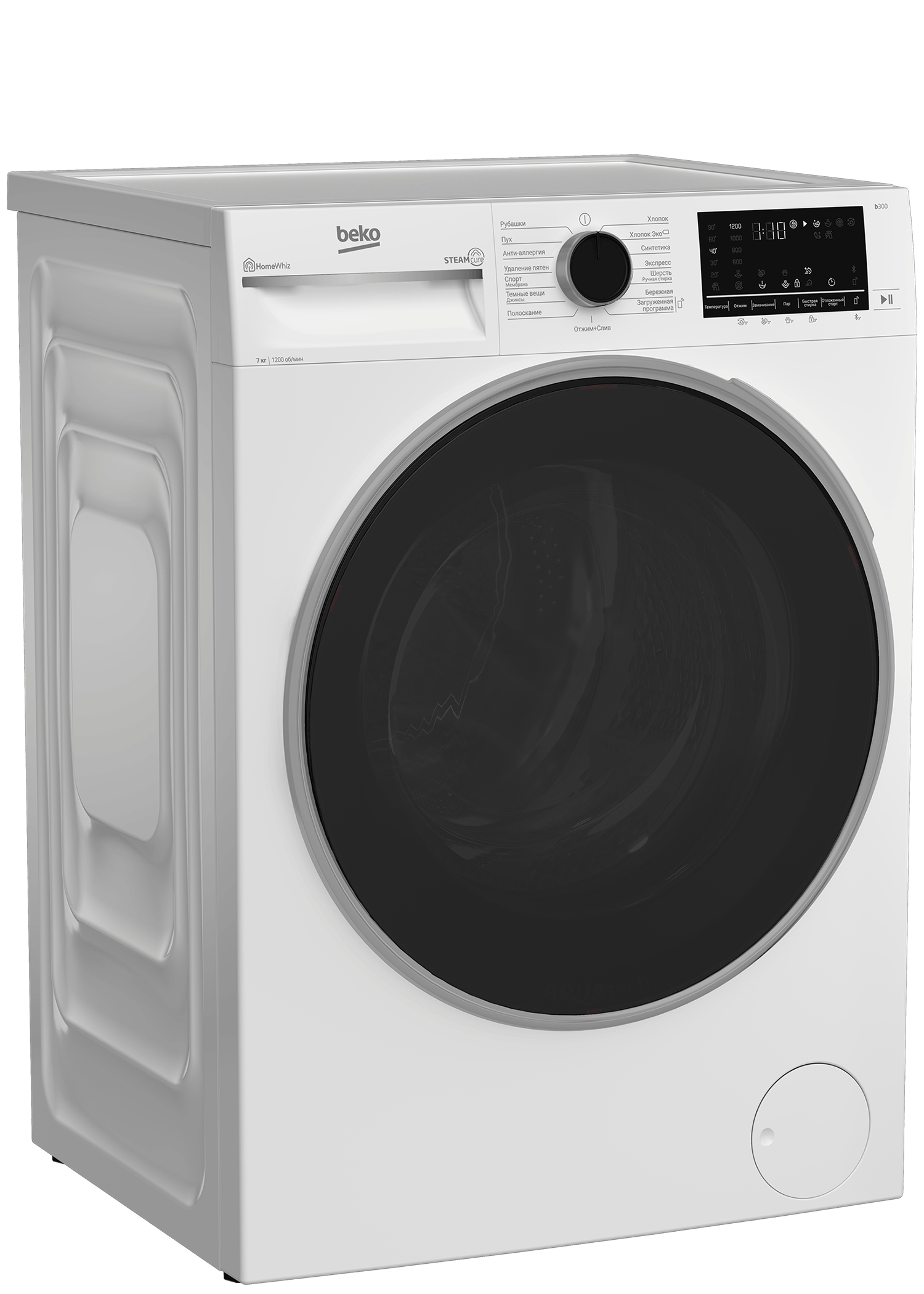Стиральная машина Beko B3WFR572WC (BY) — функциональная и стильная модель с чёрным люком, элегантно выделяющимся на фоне классического белого корпуса и крупным электронным дисплеем для удобного управления. Барабан с загрузкой до 7 кг позволяет стирать крупные партии белья, а 15 программ обеспечивают бережный уход за любыми тканями — от деликатных до плотных и объёмных.