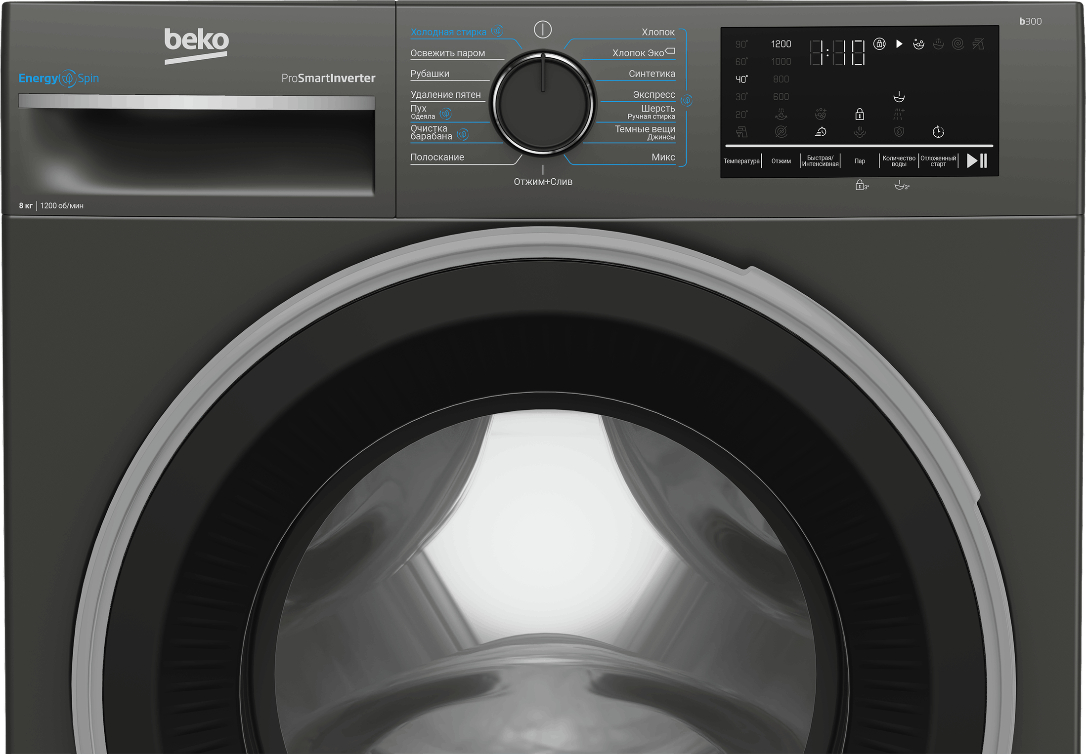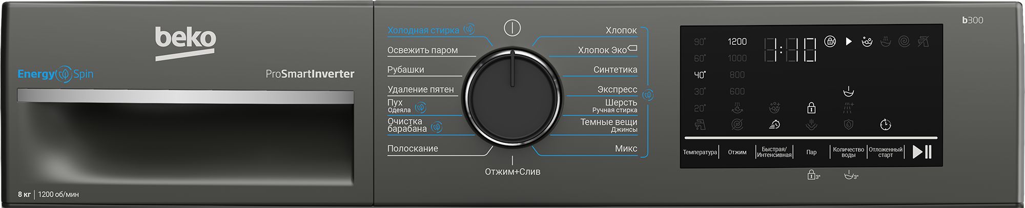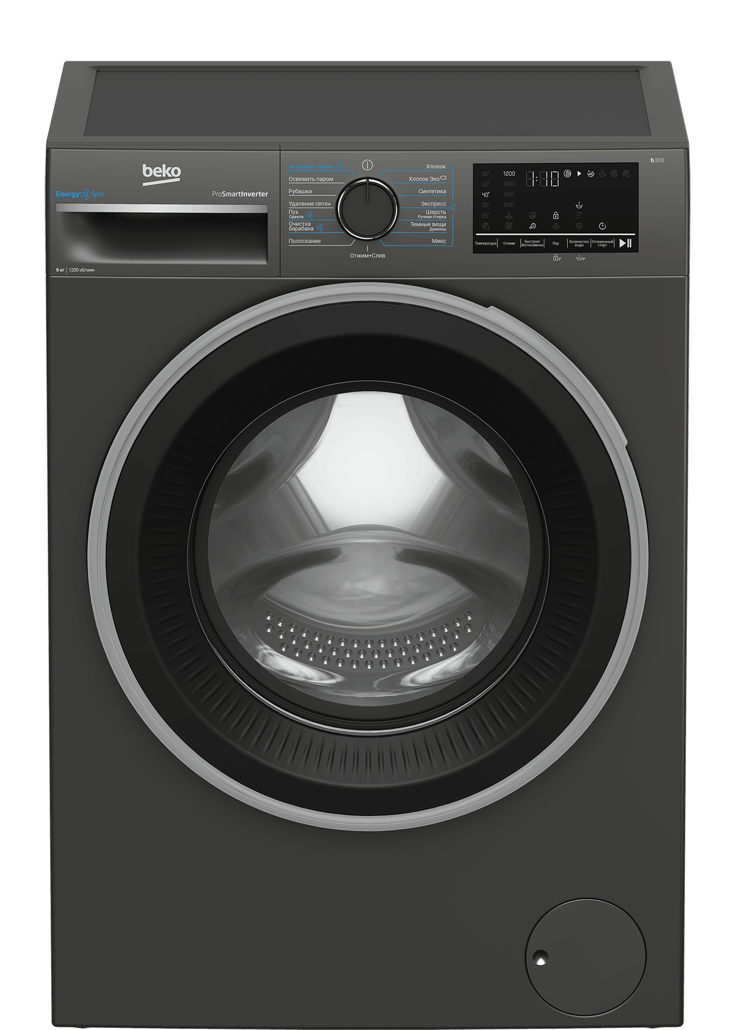 Стиральная машина Beko B3WFR482A BY в стильном оттенке антрацит сочетает вместимость, комфорт и современные технологии. Благодаря барабану объемом 8 кг она легко справляется как с повседневной стиркой, так и с крупными вещами, а 15 тщательно продуманных программ обеспечивают бережный уход за любыми типами тканей.