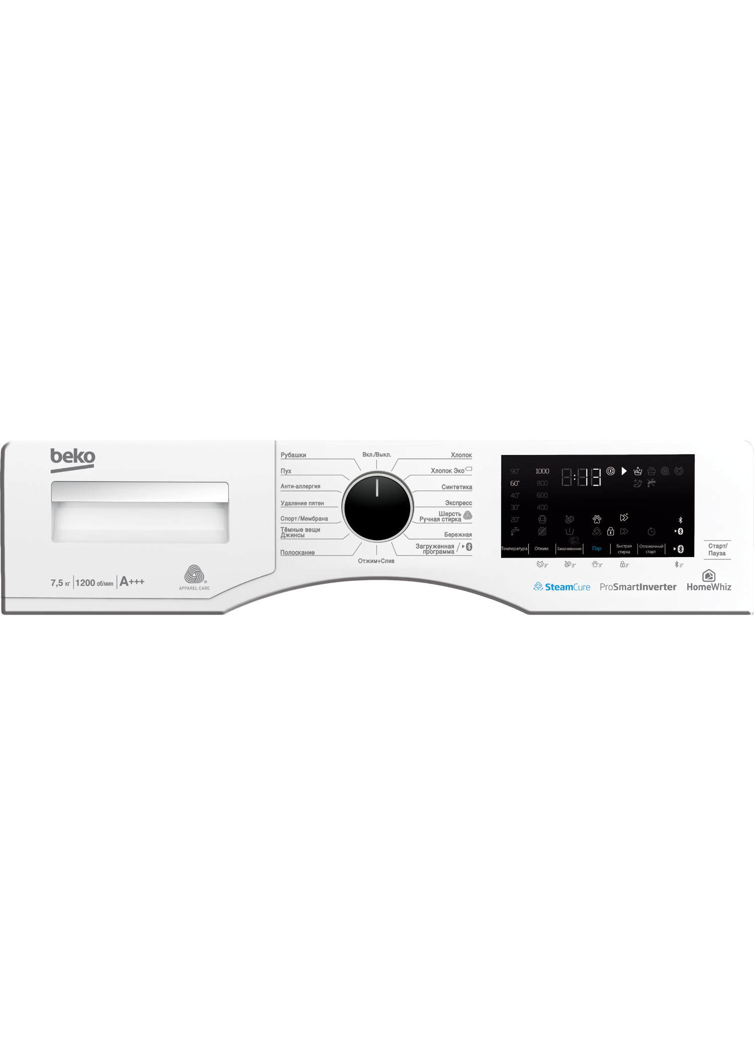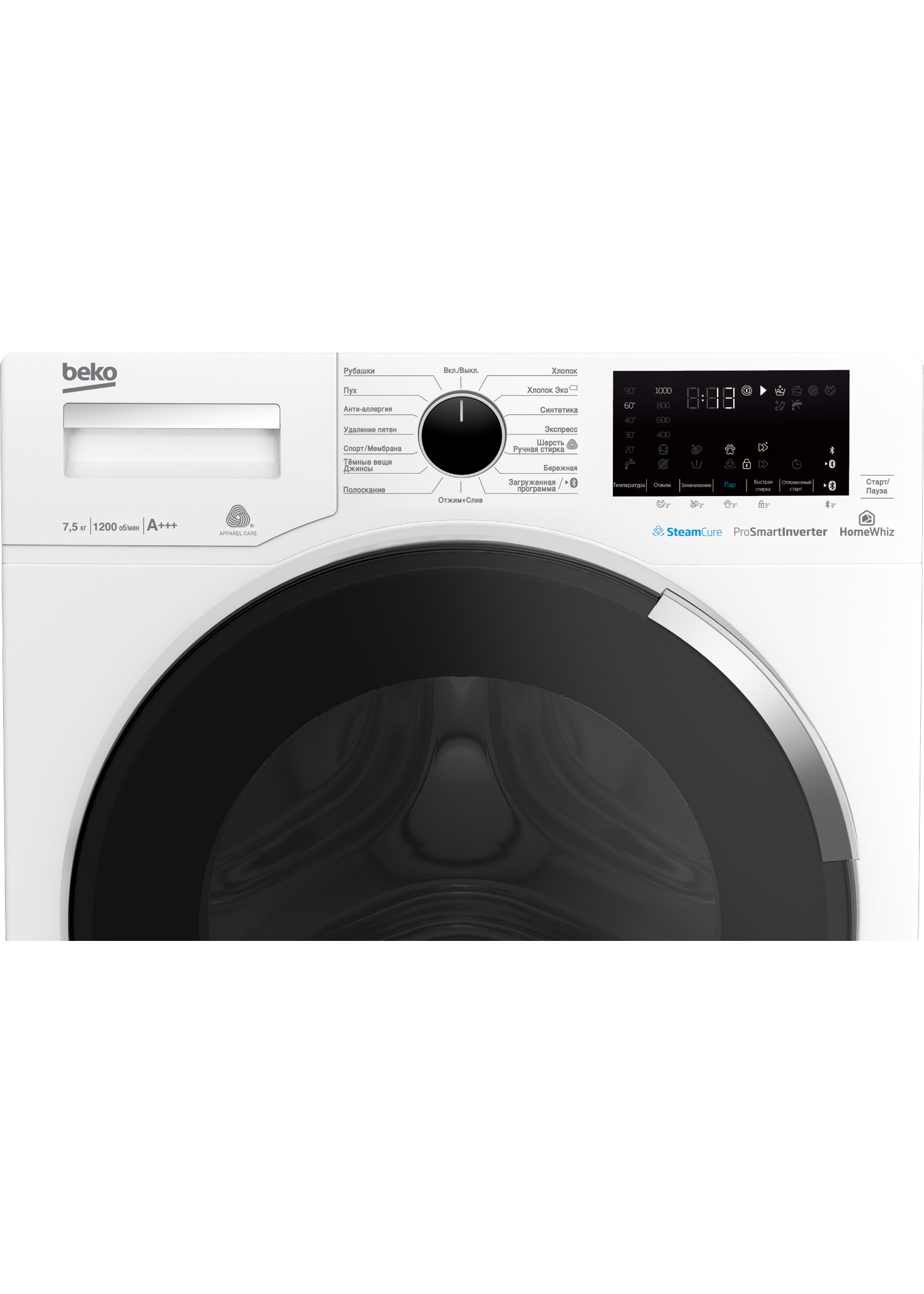 Стильная стиральная машина с сенсорным управлением, затемненным стеклом люка и функцией отложенного старта до 24 часов. Благодаря глубине 45 см и широкому люку загрузка стиральной машины увеличена до 7,5 кг. Стиральная машина оснащена долговечным инверторным мотором, технологией обработки паром SteamCure и функцией HomeWhiz, благодаря которой вы можете управлять стиральной машиной с помощью приложения на смартфоне. Стиральная машина единственная из серии Beko имеет функцию «Удаление шерсти животных» для идеальной чистоты вашей одежды.