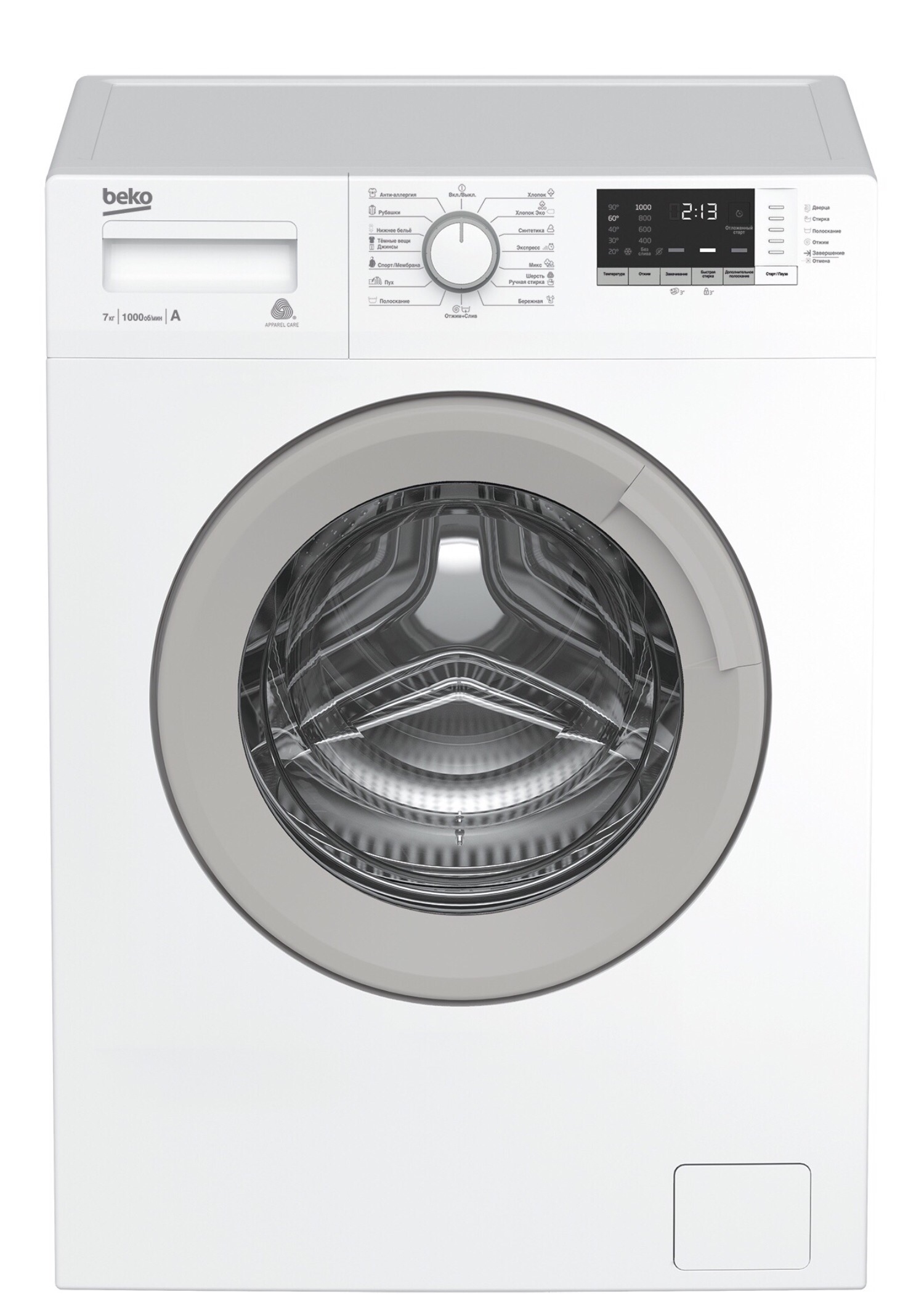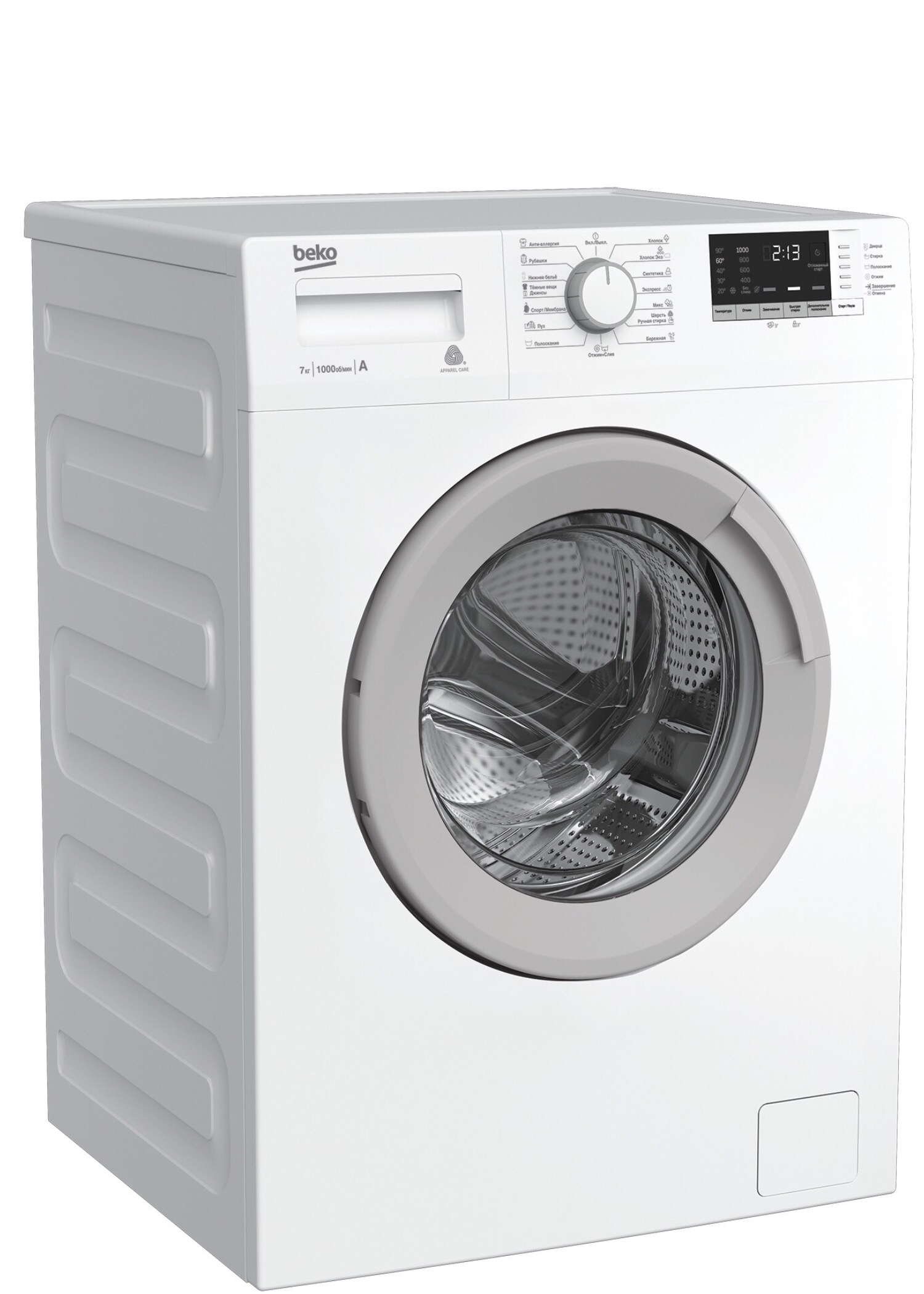 Белая стиральная машина глубиной 45 см с никелированным нагревательным элементом Hi-Tech с защитой от накипи, загрузкой барабана до 7 кг и функцией отложенного старта до 19 часов. Стиральная машина имеет 15 программ стирки для разных типов ткани и одежды, включая режимы для пуховиков и гипоаллергенной стирки, а также экспресс-стирку за 14 минут, электронный контроль дисбаланса и систему автоматического контроля уровня воды для безопасной работы. Блокировка от детей предотвращает случайное нажатие кнопок и изменение программы стирки.