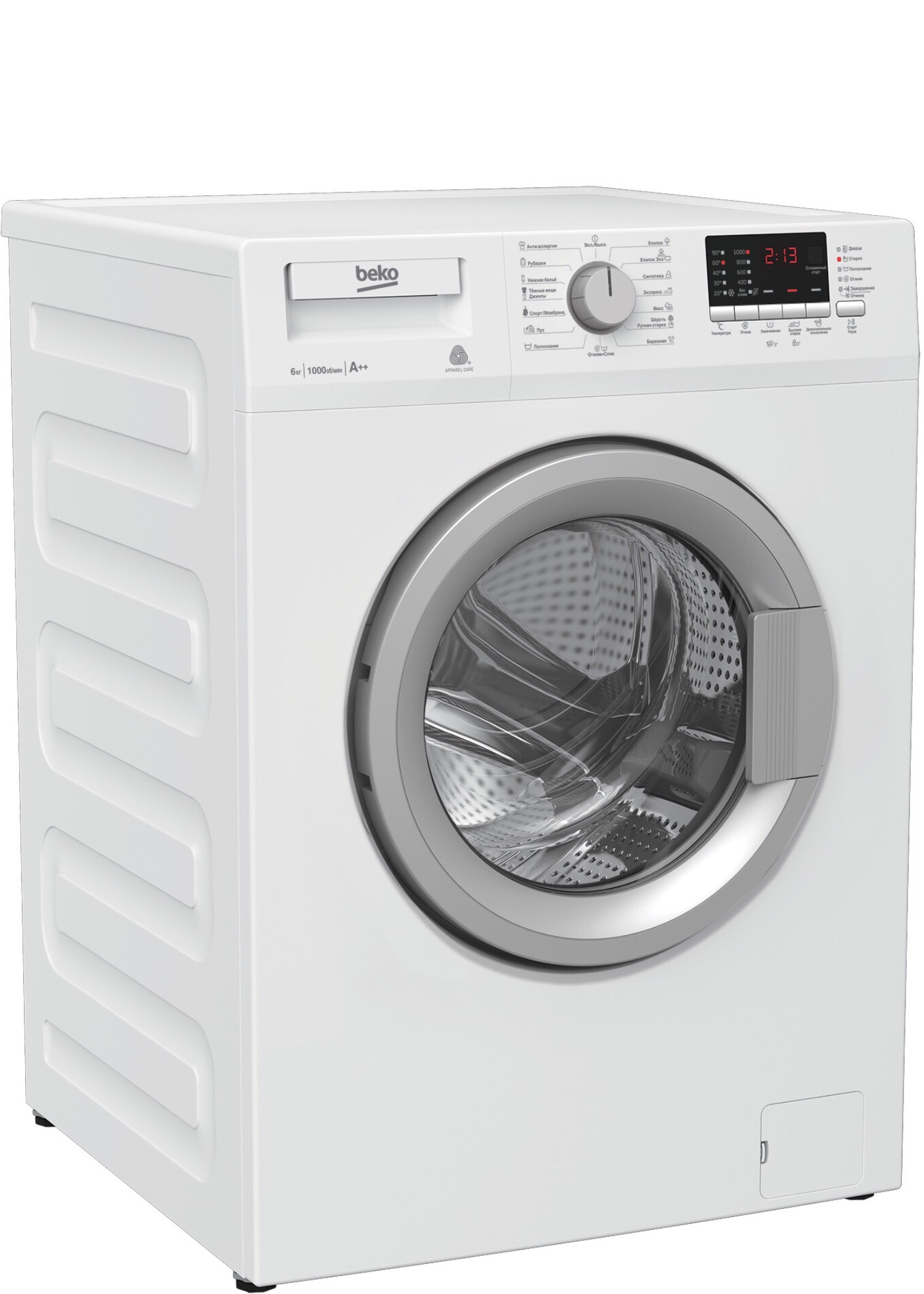 Белая стиральная машина с подключением к холодной воде и нагревательным элементом Hi-Tech с защитой от накипи. 15 программ работы включают стирку шерстяных и темных вещей, спортивной одежды и пуховиков, а также гипоаллергенную и быструю стирку за 14 минут. Благодаря электронному контролю дисбаланса белье равномерно распределяется в барабане, и уровень шума и вибрации снижаются. Максимальная загрузка барабана стиральной машины – 6 кг, скорость отжима – 1000 оборотов в минуту. Функция отложенного старта позволяет запускать стирку в любое время дня и ночи.