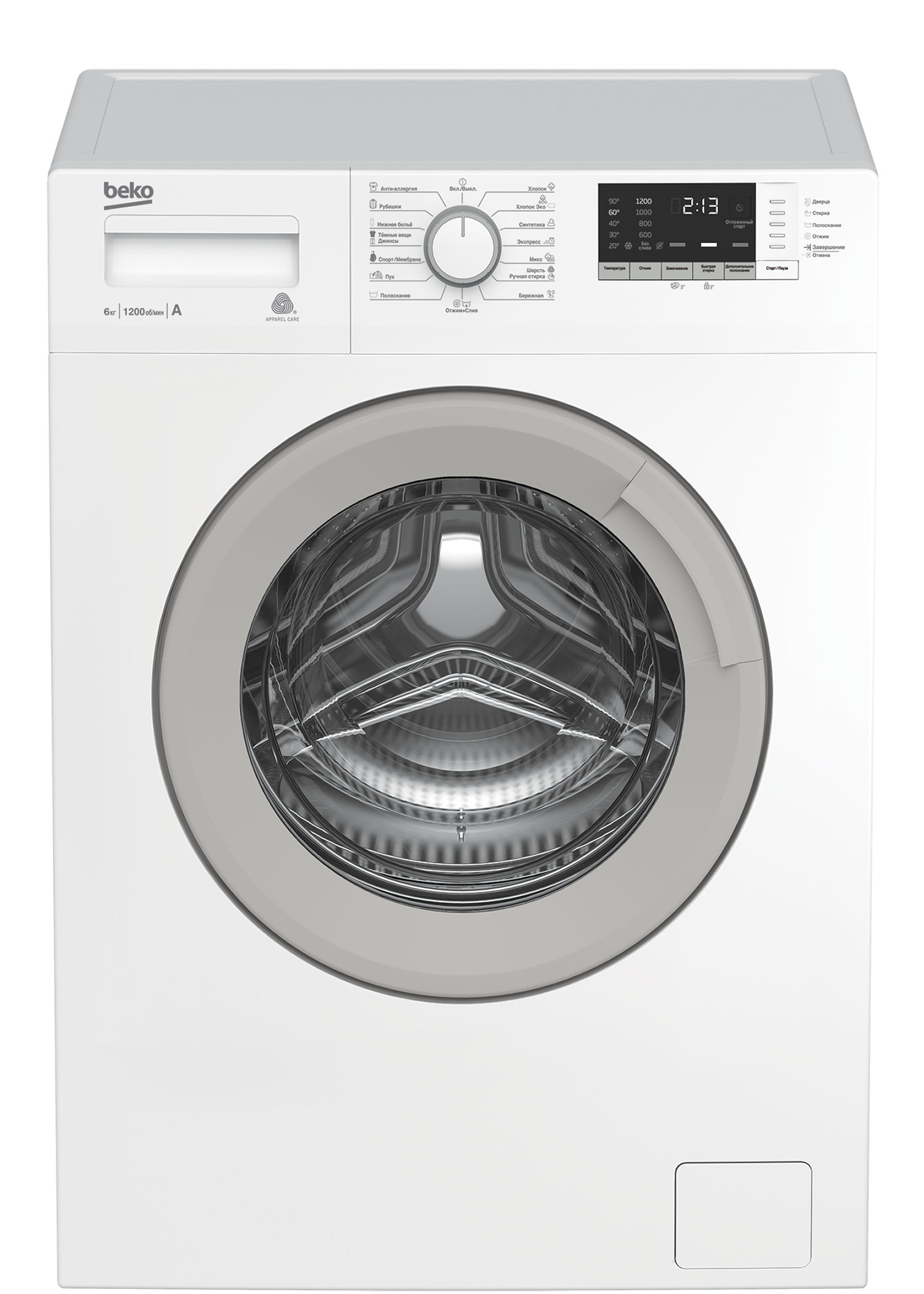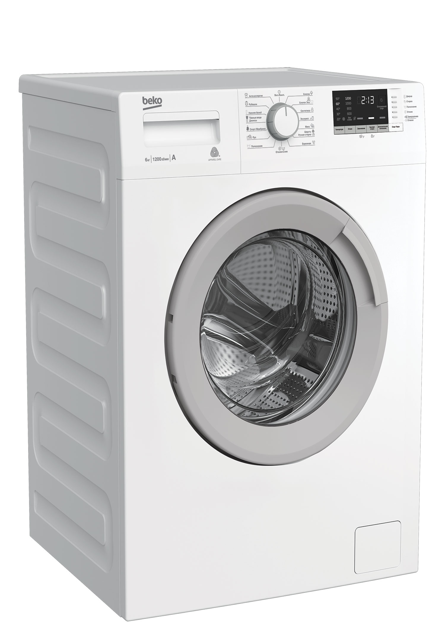 Стиральная машина с загрузкой до 6 кг, отложенным стартом до 19 часов и максимальной скоростью отжима 1200 об./мин. Никелированный нагревательный элемент Hi-Tech защищен от накипи и служит дольше обычного нагревателя, а специальный дизайн стенок стиральной машины снижает уровень шума во время стирки. Стиральная машина имеет 15 программ стирки для разных типов ткани и одежды, включая экспресс-стирку за 14 минут, электронный контроль дисбаланса и систему автоматического контроля уровня воды для безопасной работы.