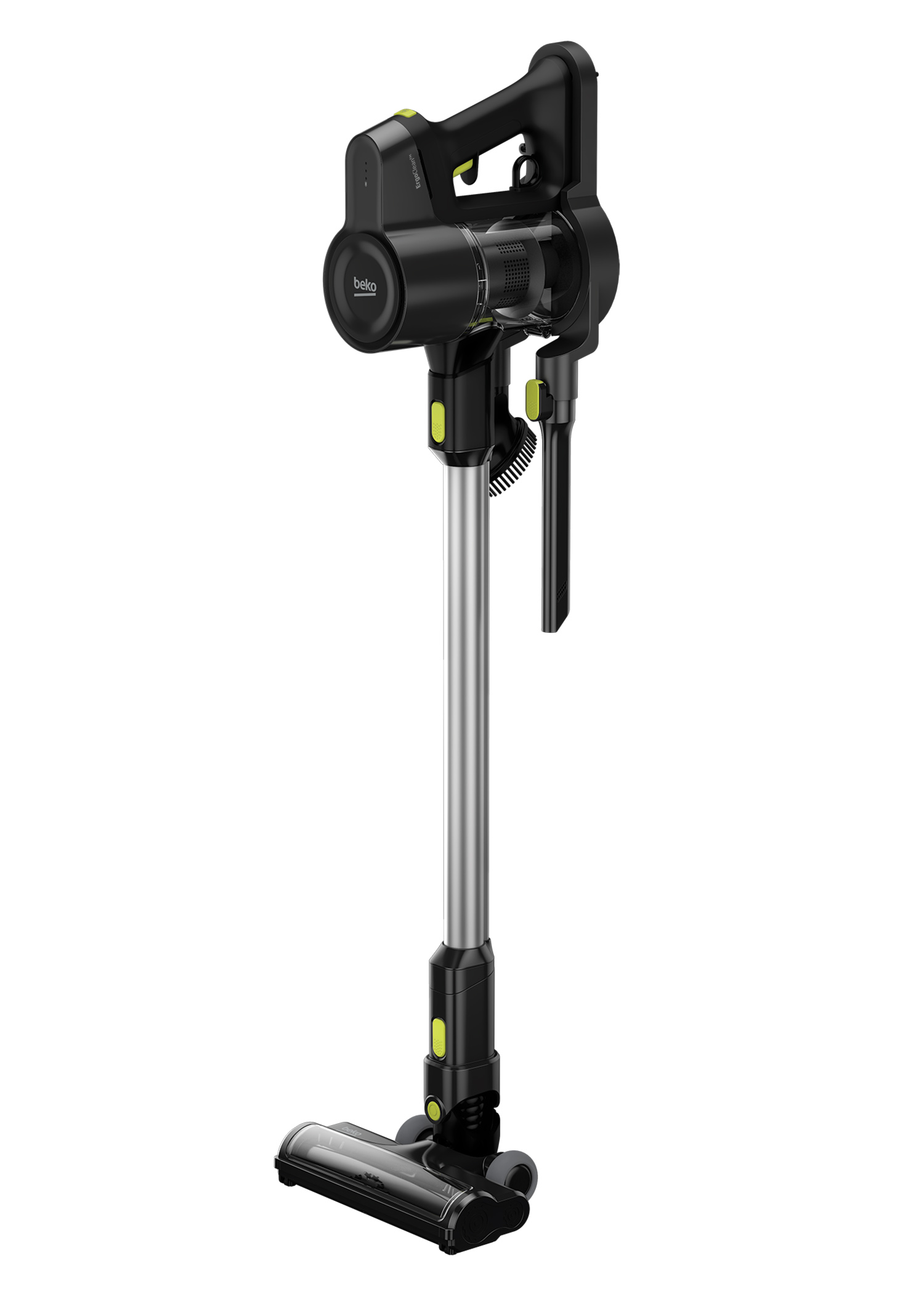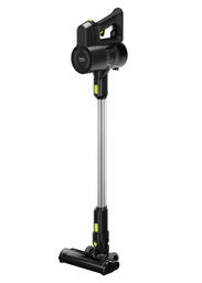 Беспроводной вертикальный циклонный пылесос черного цвета с мотором мощностью 150 Вт. Оснащен емким литий-ионным аккумулятором, обеспечивающим 45 минут беспрерывной работы. Время до полной зарядки – 4-5 часов. Входящие в комплект насадки значительно расширяют функционал пылесоса: турбощетка поможет справиться с загрязнениями на напольных покрытиях и коврах, насадка для мягкой мебели позволяет поддерживать в чистоте кровати, кресла и диваны, а щелевая насадка обеспечит чистоту в самых труднодоступных уголках дома. Вместительный пылесборник объемом 0.55 л не потребует частой очистки, а EPA-фильтр эффективно задержит пыль, мелкие частицы и патогены.