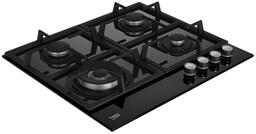 Встраиваемая газовая варочная панель черного цвета имеет стеклянную поверхность, которую легко чистить, и надежные чугунные решетки. Газовая панель оснащена фронтальным механическим управлением и 4 конфорками с системой газ-контроля, которая автоматически прекращает подачу газа, если пламя конфорки случайно гаснет. Автоматический электроподжиг конфорок встроен в ручки газовой панели для удобного и безопасного использования.
