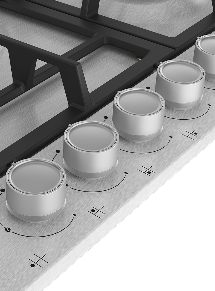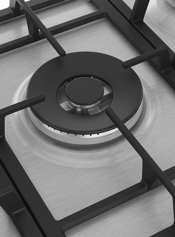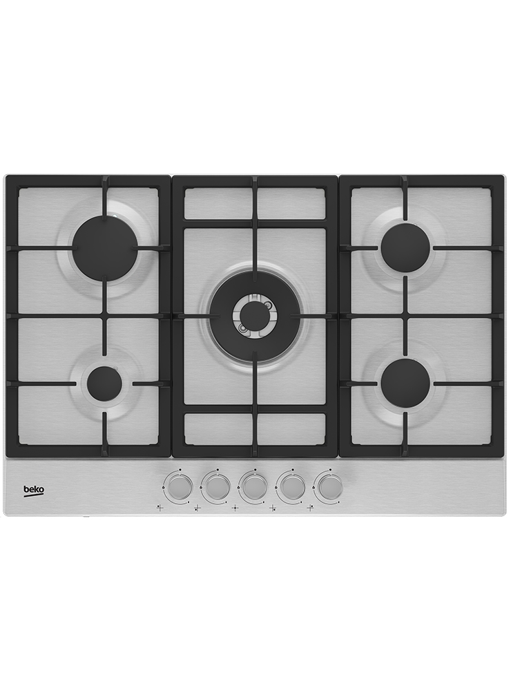 Большая встраиваемая газовая панель шириной 75 см оснащена 5 конфорками, надежными чугунными решетками и встроенным в ручки электроподжигом. Центральная конфорка варочной поверхности подходит для приготовления в сковороде-вок. Система газ-контроля панели автоматически прекращает подачу газа, если пламя конфорки случайно погаснет.