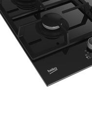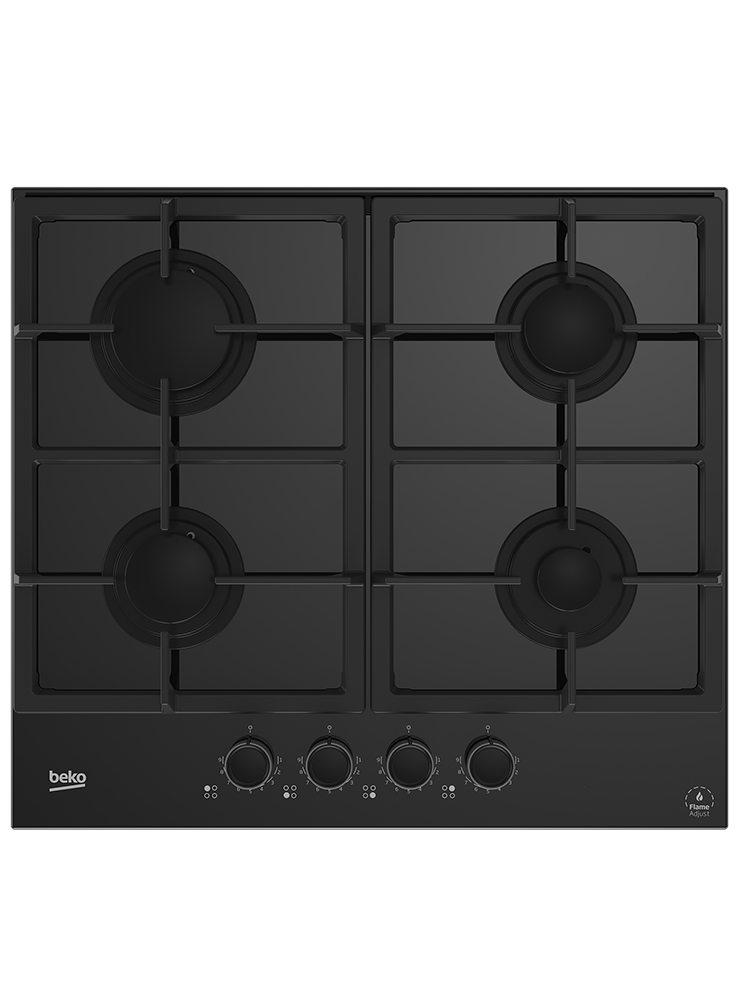 Встраиваемая газовая варочная панель черного цвета шириной 60 см с 4 конфорками разного диаметра. Поверхность газовой плиты выполнена из термостойкого стекла, которое легко чистить после каждого использования. Чугунные решетки выдерживают тяжелую посуду и легко снимаются. Управление конфорками осуществляется с помощью механических переключателей, расположенных на фронтальной стороне плиты. В каждую ручку встроен автоматический электроподжиг конфорок. Плита оснащена системой газ-контроля, которая прекращает подачу газа, если пламя случайно потухнет.