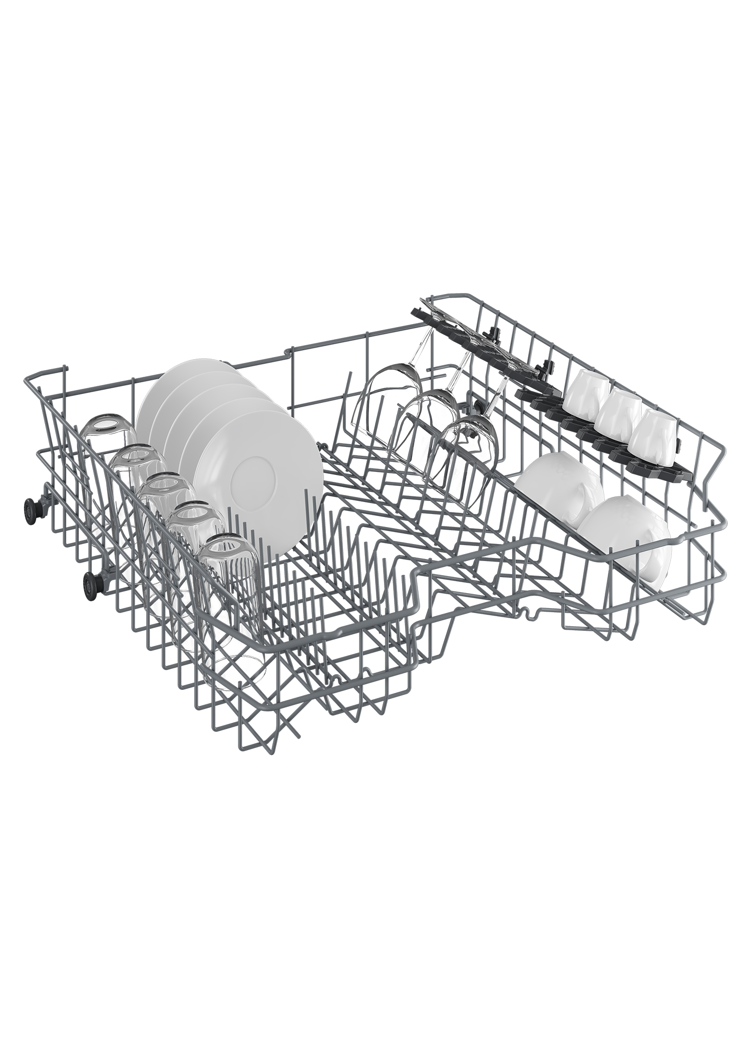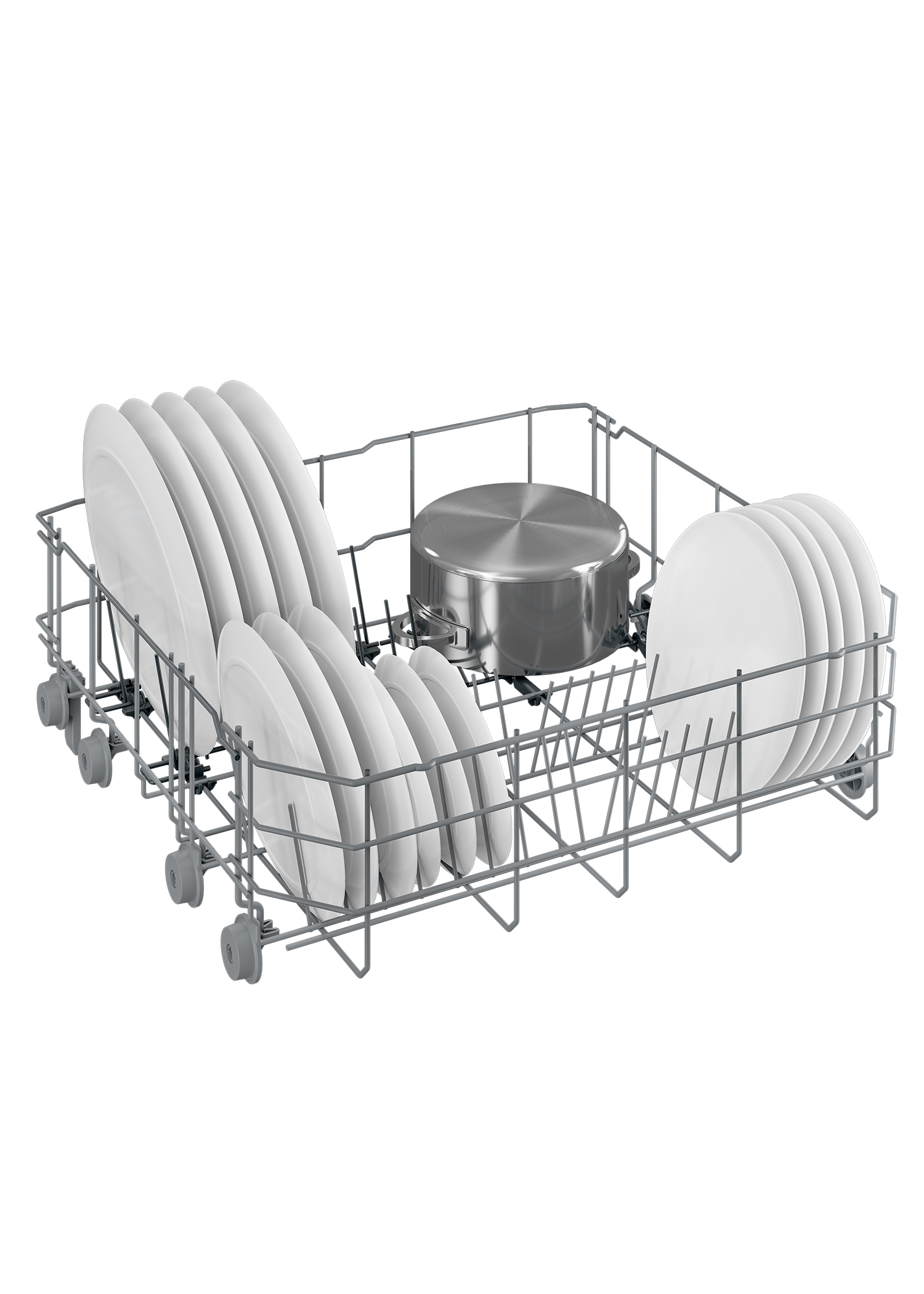 Большая посудомоечная машина шириной 60 см с сенсорным управлением и LED дисплеем. Вмещает 13 комплектов посуды и моет в 5 режимах при температуре от 35°С до 70°С. Поддерживает функцию половинной загрузки для экономного расхода электричества и воды при частичном заполнении машины. Оснащена удобным световым индикатором на полу LedSpot, сигнализирующем об окончании программы. Предупреждает о протечке, отсутствии соли или ополаскивателя, а также имеет встроенную систему смягчения воды.