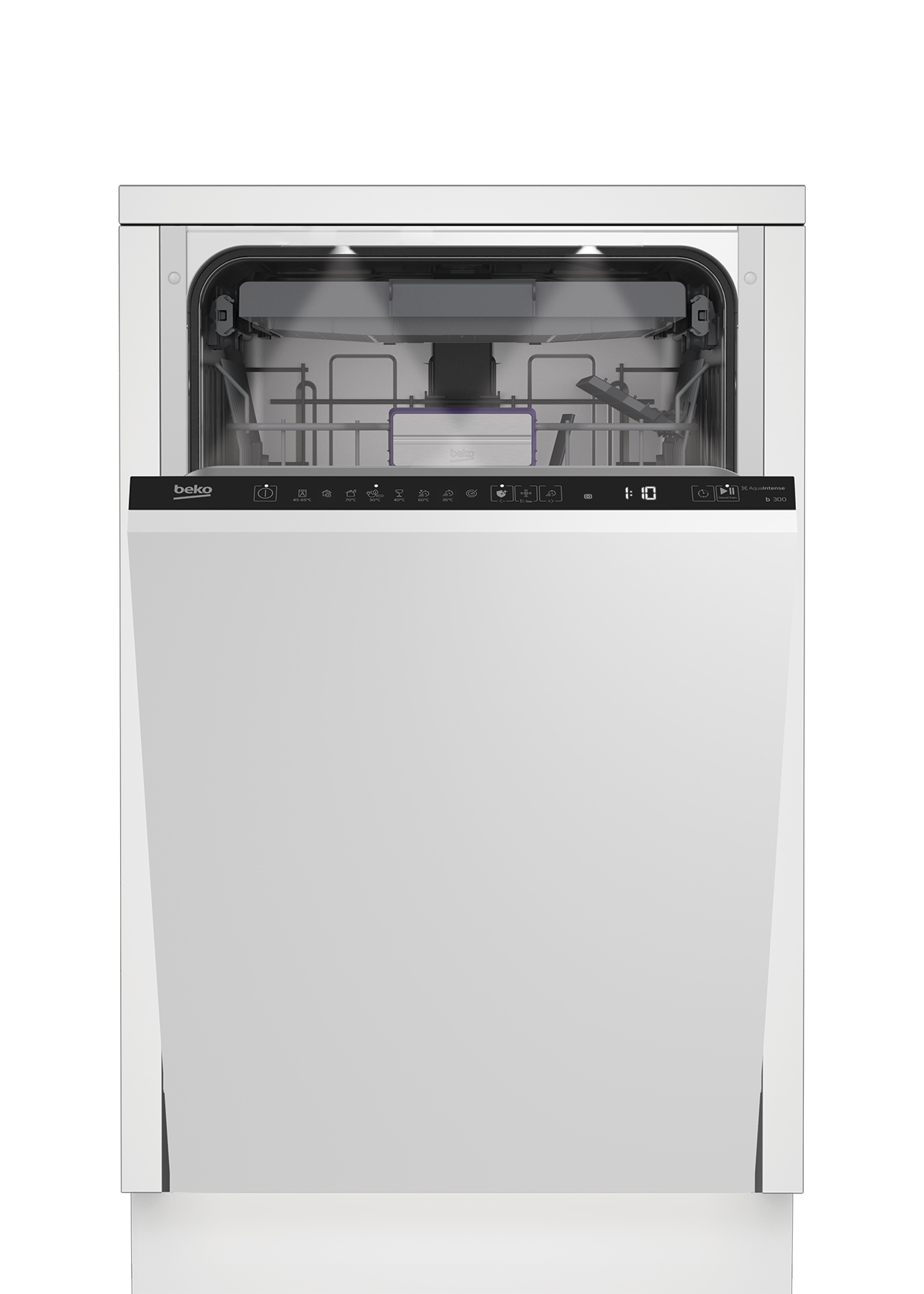 Встраиваемая посудомоечная машина шириной 45 см на 11 комплектов посуды. Модель оснащена тремя корзинами и тихим инверторным мотором ProSmart, благодаря которому ее можно включать ночью и не беспокоиться о сне домочадцев. В посудомойку встроено 8 программ работы в широком диапазоне температур: от деликатных 35°С до 70°С для особо стойких загрязнений, а специальный режим GlassCare позволяет особо бережно отмывать хрупкую стеклянную посуду при сниженном напоре воды и температуре 40°С. Система смягчения воды предотвращает появление известкового налета и продлевает срок службы посудомоечной машины, а световые индикаторы предупредят о завершении цикла мойки, протечке, отсутствии соли или ополаскивателя.