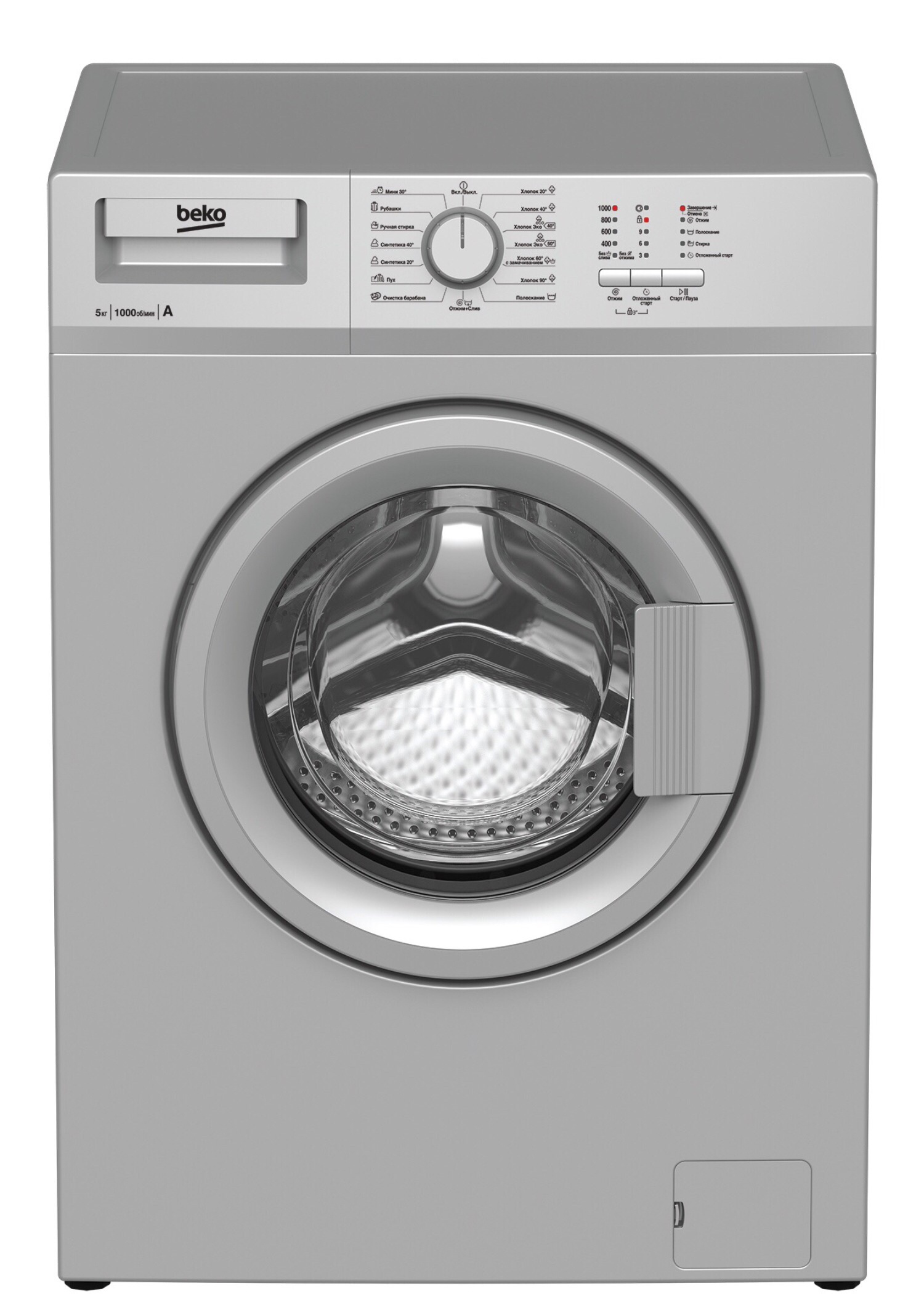 Узкая стиральная машина серебристого цвета с блокировкой кнопок от детей, удобным управлением и загрузкой барабана до 5 кг. Стиральная машина имеет 15 автоматических программ стирки с приятным сигналом об окончании цикла и функцию отложенного старта на 3, 6 или 9 часов.