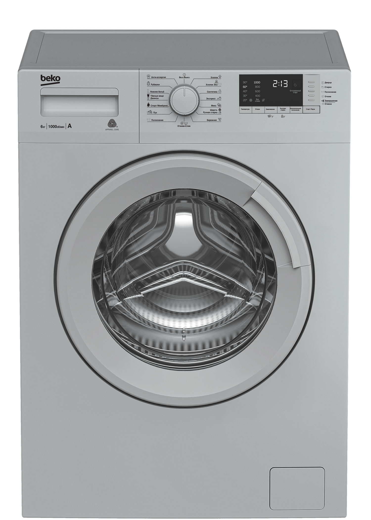 Серебристая стиральная машина с электронным управлением и подключением к холодной воде. Максимальная загрузка стиральной машины составляет 6 кг. Системы автоматического контроля уровня воды и пенообразования и защиты от перелива обеспечивают безопасную работу стиральной машины даже ночью. Нагревательный элемент Hi-Tech защищен от накипи и служит дольше обычного нагревателя, а специальный дизайн стенок стиральной машины снижает уровень шума во время стирки.