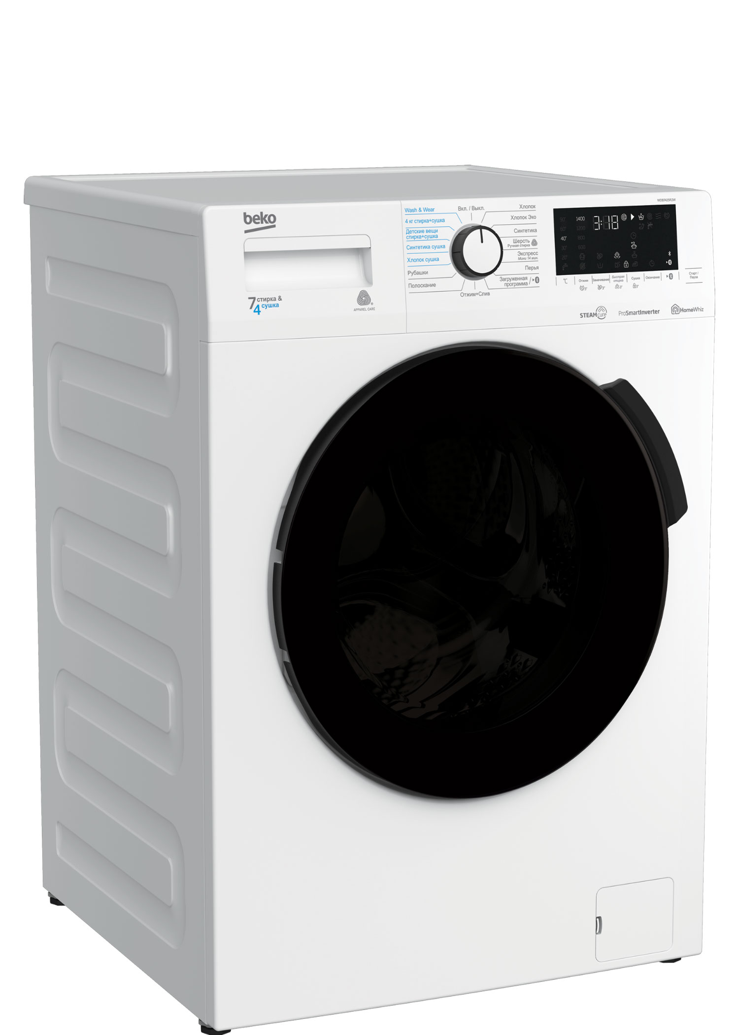 Стирально-сушильная машина с тихим и долговечным инверторным двигателем, сенсорным управлением и функцией блокировки кнопок от детей. Максимальная загрузка барабана для стирки составляет 7 кг, для сушки – 4 кг. Режимы работы включают стирку и сушку детской одежды и специальную программу Wash&Wear. Скорость отжима стирально-сушильной машины регулируется от 600 до 1200 оборотов в минуту. Беспроводное управление HomeWhiz позволяет следить за стиркой и сушкой машины с вашего смартфона или планшета.