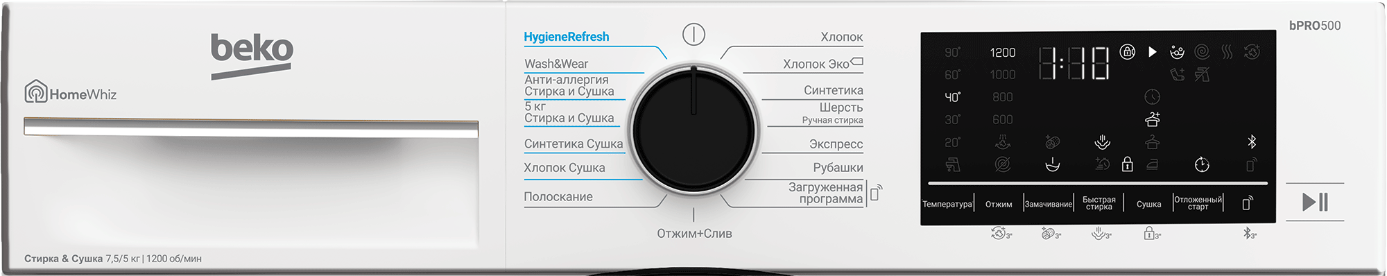 • Объем 7.5 (стирка)/5 (сушка) кг