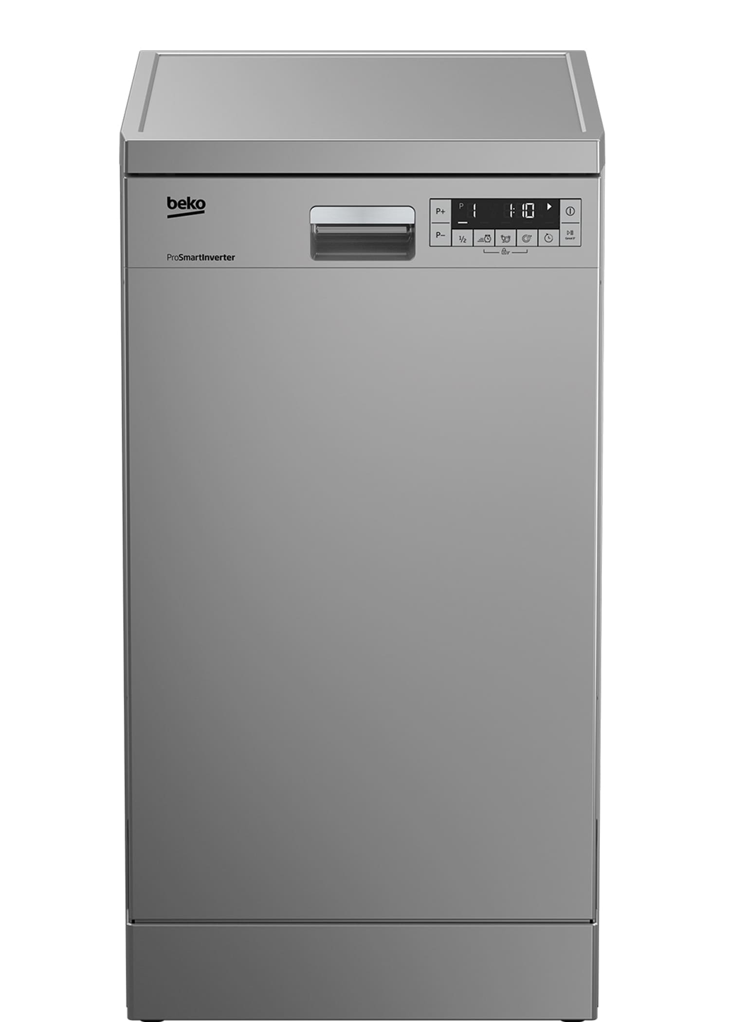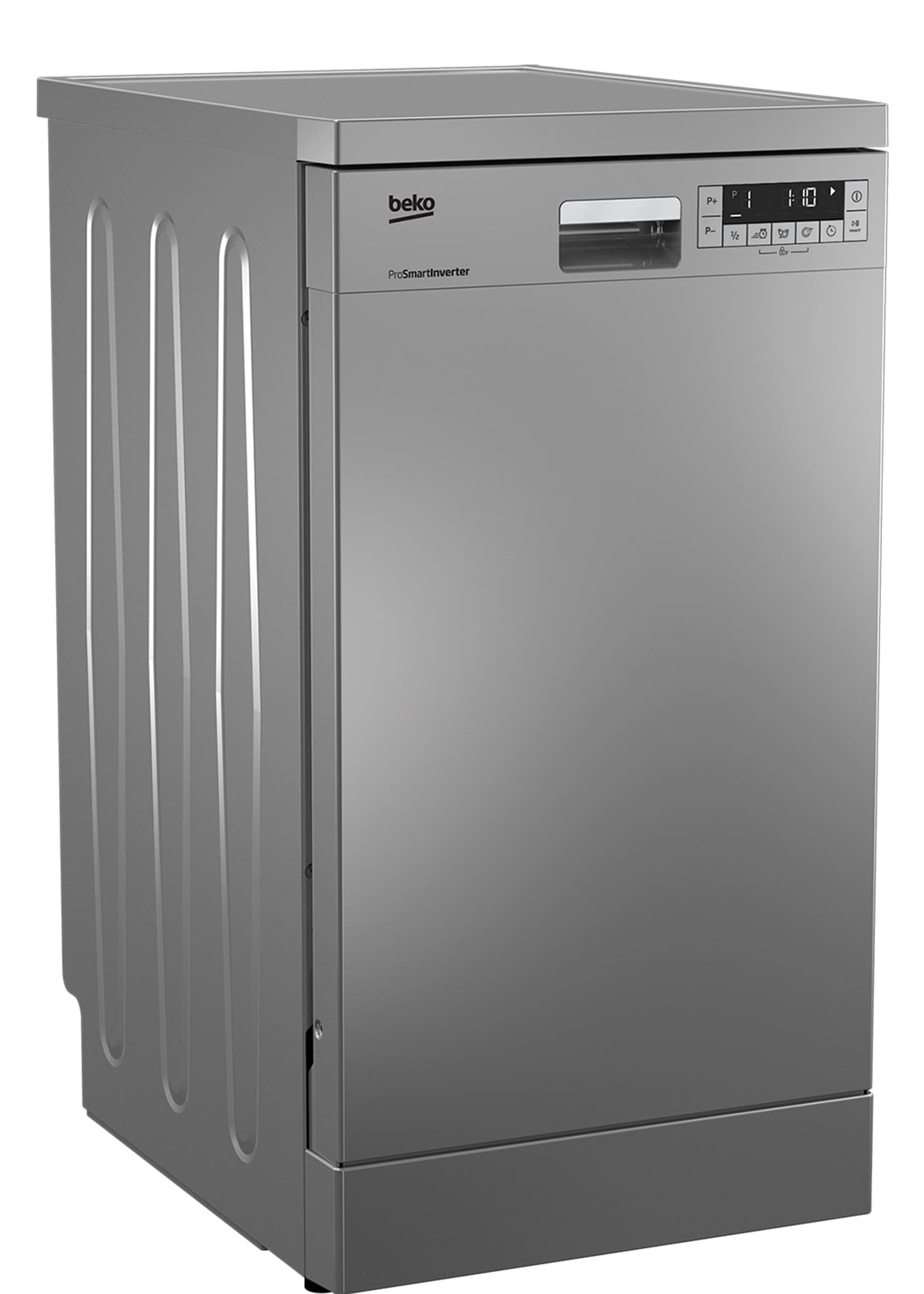Узкая посудомоечная машина с инверторным двигателем ProSmart и низким уровнем шума вмещает до 10 комплектов посуды и имеет функцию мытья при половинной загрузке. Посудомоечная машина предлагает 5 программ работы, дополнительные режимы сушки посуды и самоочистки, а также функции блокировки кнопок от случайного нажатия и отложенного старта до 24 часов.