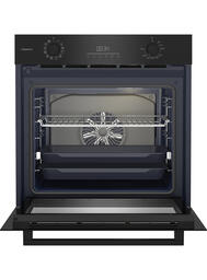 Встраиваемый духовой шкаф черного цвета с цифровым LED дисплеем, сенсорными клавишами, утапливаемыми переключателями и галогеновой подсветкой. Имеет стандартную ширину 60 см. Духовка оснащена 12 режимами приготовления, в том числе функцией Booster — она поможет быстро разогреть блюдо к приходу гостей без необходимости ждать, пока духовой шкаф нагреется. Позволяет готовить несколько блюд одновременно за счет 3D-выпекания, равномерно распределяющего нагрев по всему объему рабочей камеры. Дверца духовки оснащена двойным стеклом, которое не позволит случайно обжечься, а также технологией SoftClosе для ее плавного и аккуратного закрытия. При необходимости дверцу можно снять, чтобы быстро и удобно помыть ее отдельно от духового шкафа. Чистку духовки значительно упрощает и каталитическая задняя стенка, расщепляющая жир прямо во время приготовления еды. Оснащена телескопическими направляющими, благодаря которым блюда удобно ставить и доставать, минимизируя риск контакта с горячими поверхностями. В комплекте: стандартный противень, глубокий противень и решетка. Класс энергопотребления духовки — А.