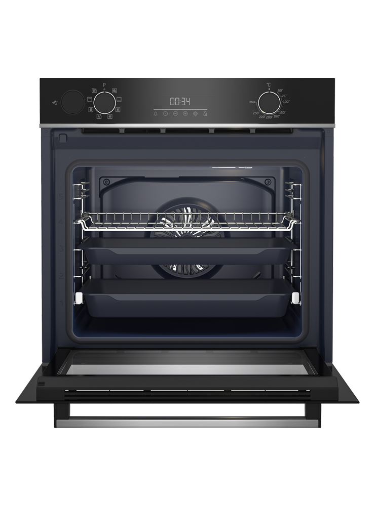 Встраиваемый многофункциональный духовой шкаф BBIS13300XMSE имеет класс энергопотребления А+ и оснащен системой плавного закрытия дверцы и ярким дисплеем с поворотными переключателями. Модель предлагает 9 режимов работы для самых разных задач, а также функцию приготовления с паром, при которой блюда получаются сочными и нежными, а корочка хрустящей.