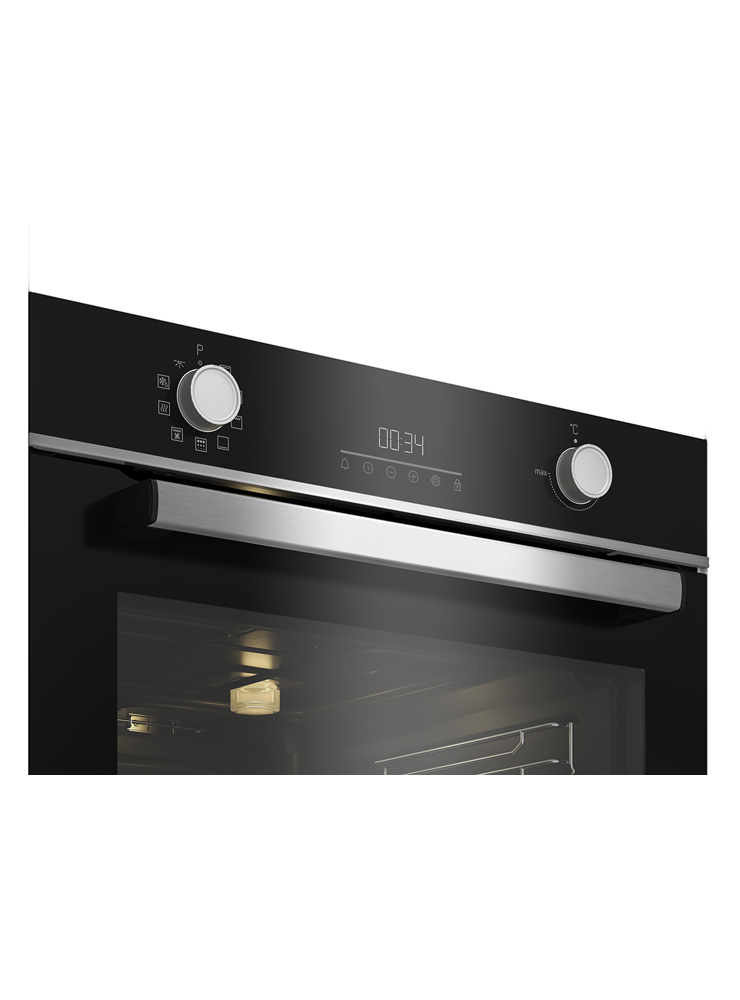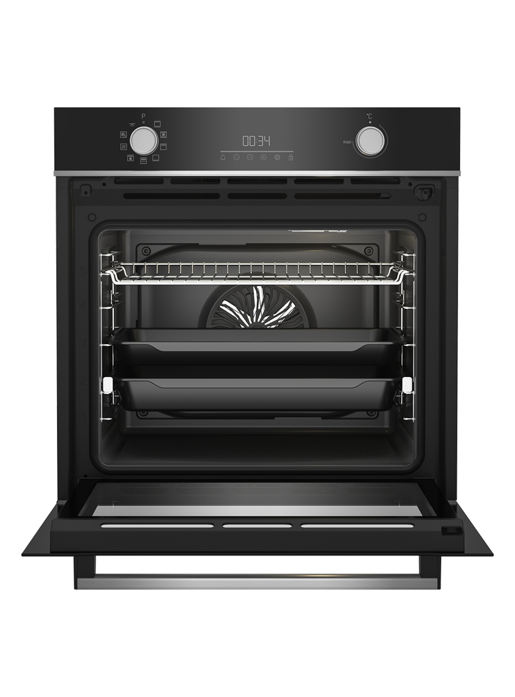 Многофункциональный духовой шкаф Beko черного цвета имеет объем 71 л и предлагает 9 режимов приготовления еды, включая традиционный нижний и верхний нагрев и специальную программу 3D-приготовления, на которой можно готовить несколько блюд одновременно. Программа «Эко вентилятор с нагревом» обеспечивает эффективную работу духовки при пониженном расходе электроэнергии, подтверждая класс энергопотребления устройства А+. Духовой шкаф оснащен дверцей с 4-слойным стеклом и технологией плавного закрытия с автодоводчиком SoftClose, а также функцией пиролитической очистки для удобного ухода за духовкой.