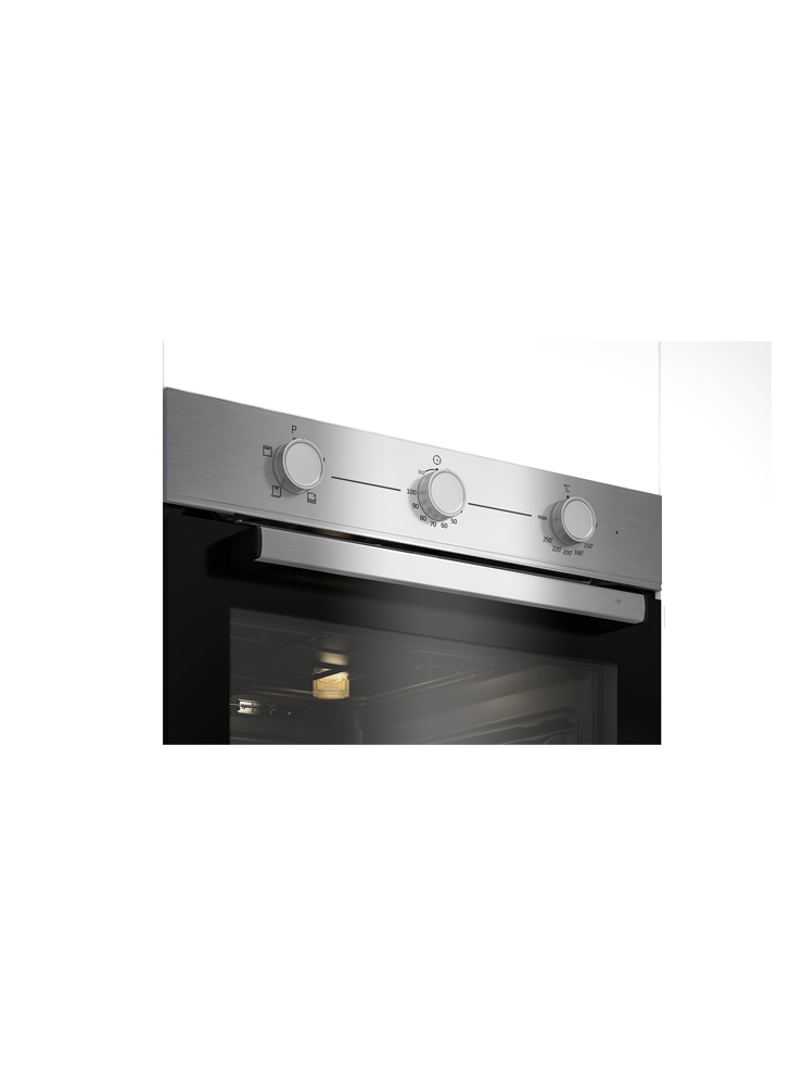 Простой и функциональный встраиваемый духовой шкаф со статической системой нагрева имеет 4 режима приготовления и большой объем - 74 л. Духовка оснащена удобными поворотными переключателями и механическим таймером, а стеклянная поверхность панели управления легко очищается от следов жира и грязи. В комплекте с духовым шкафом идут стандартный противень и решетка, а духовке присвоен класс энергоэффективности А.